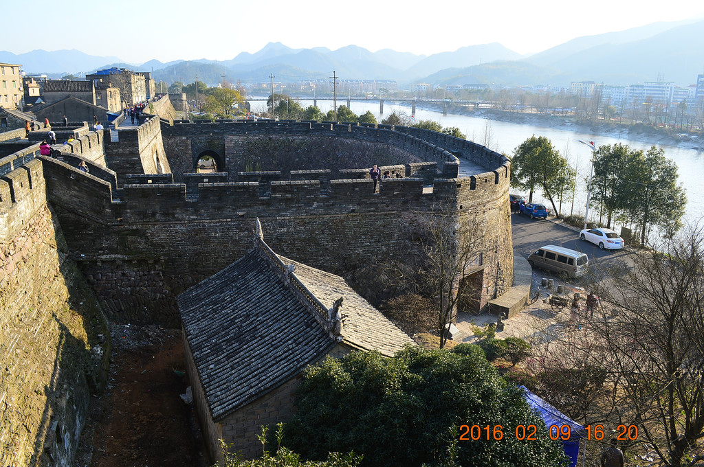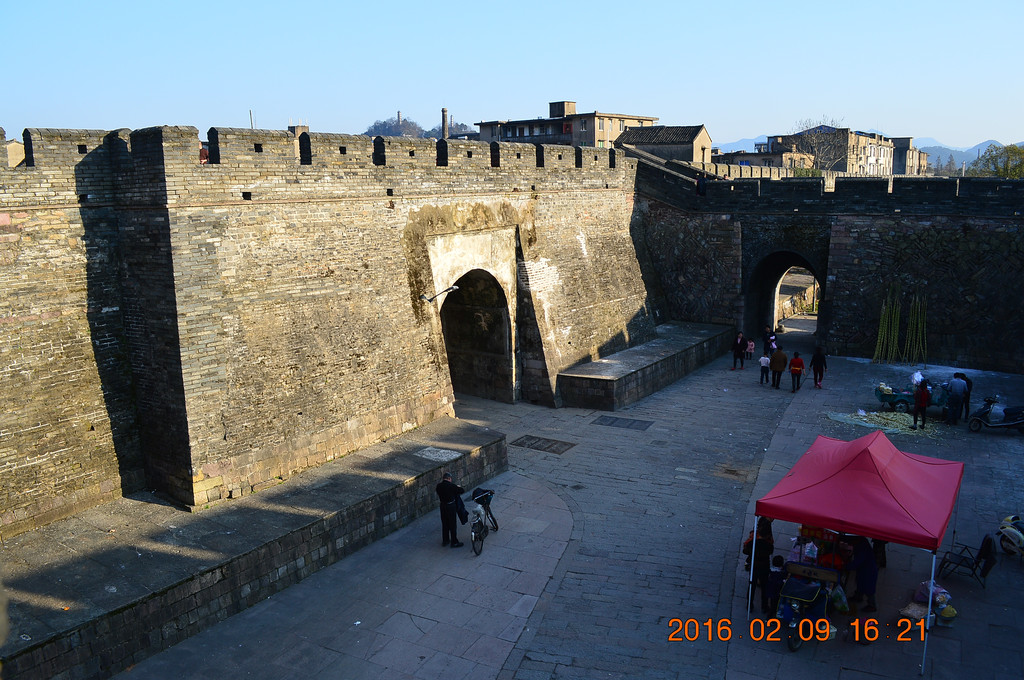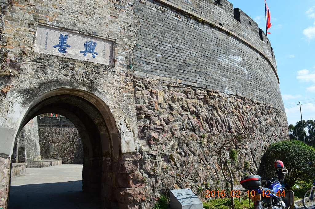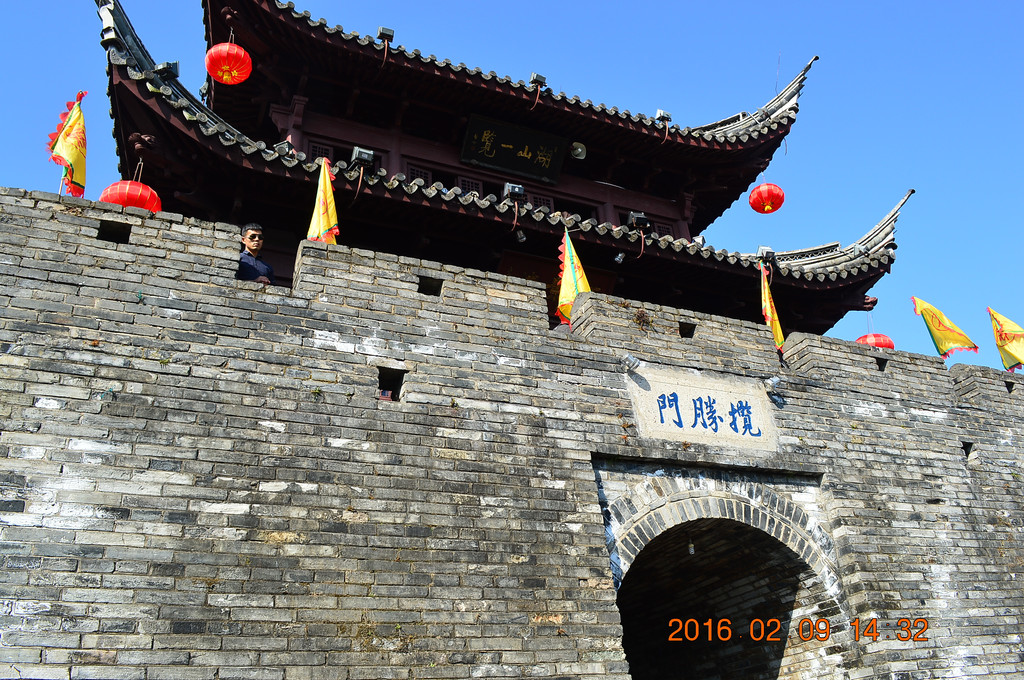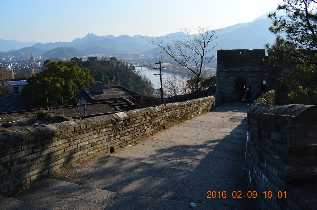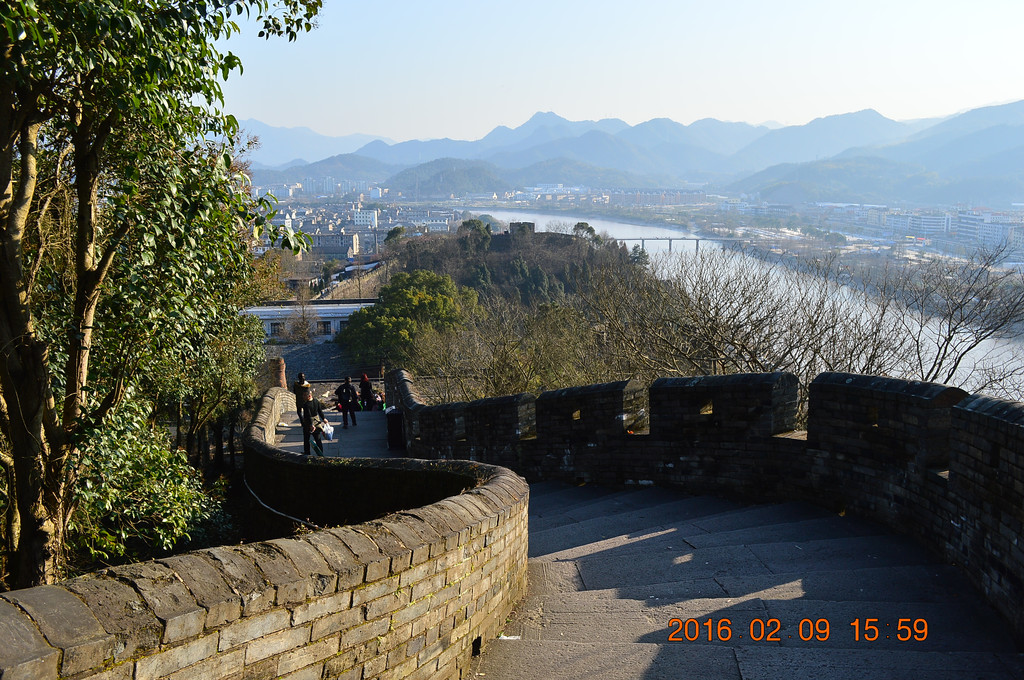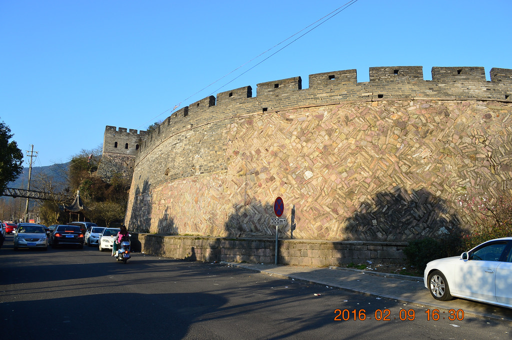 台州府城墙,国务院2001年6月25日公布的第五批全国重点文物保护单位,古建筑类,时代宋至清。这就是俗称“江南长城”的景点,门票65元。台州府城墙全长6000余米,现存5000余米,东起揽胜门,沿北固山山脊逶迤至烟霞阁,于山岩陡峭间直抵灵江东岸。