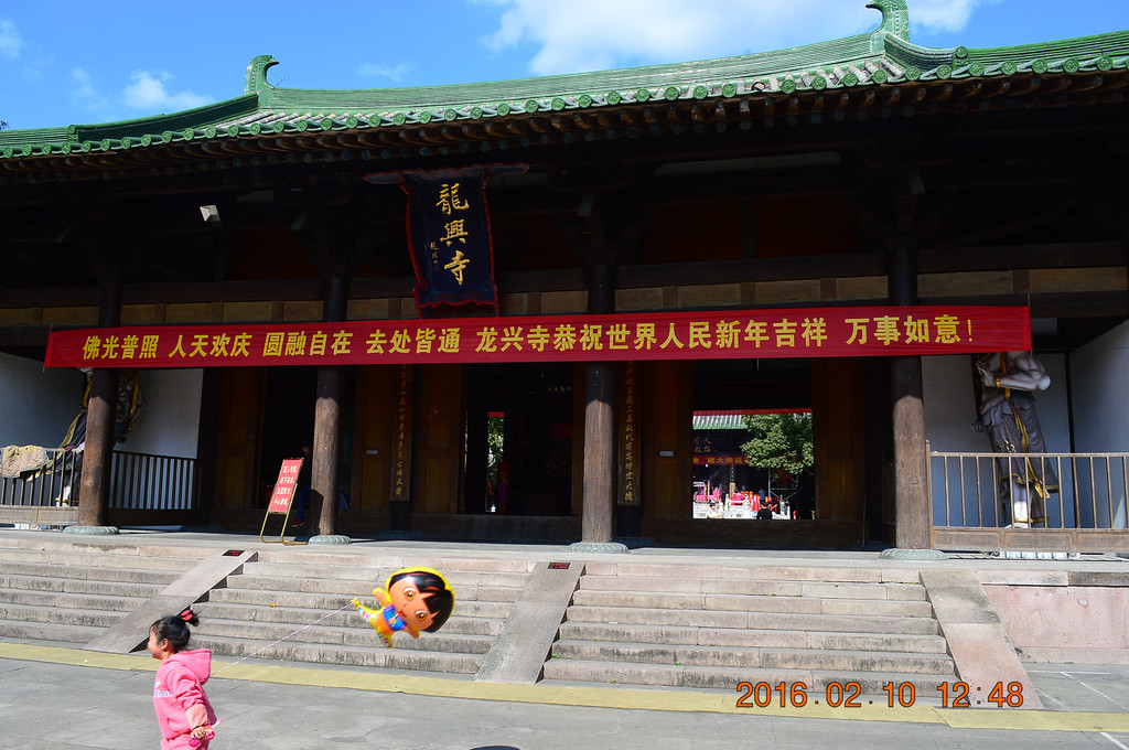 龙兴寺路边停满车,游客真不少。当然,游客主要是来逛紫阳老街。