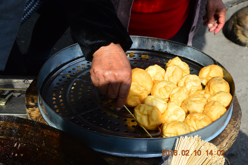 老街上有不少现制蛋清羊尾的小摊,这是临海的特色小吃。