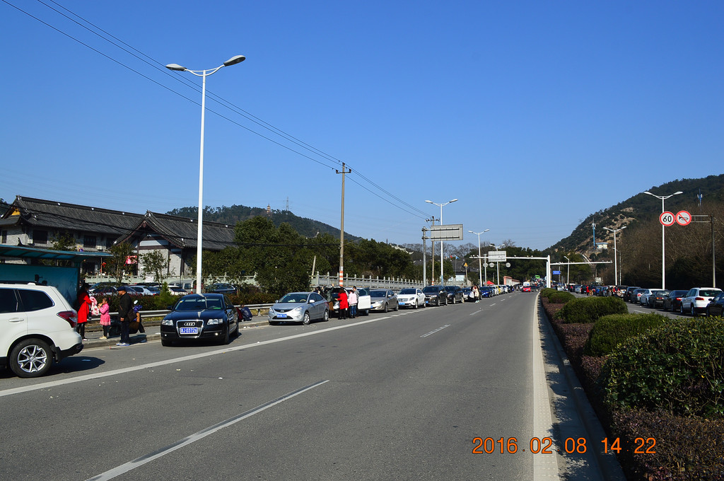 大年初一到阿育王寺烧香的人特别多,公路两旁停满了自驾车。
