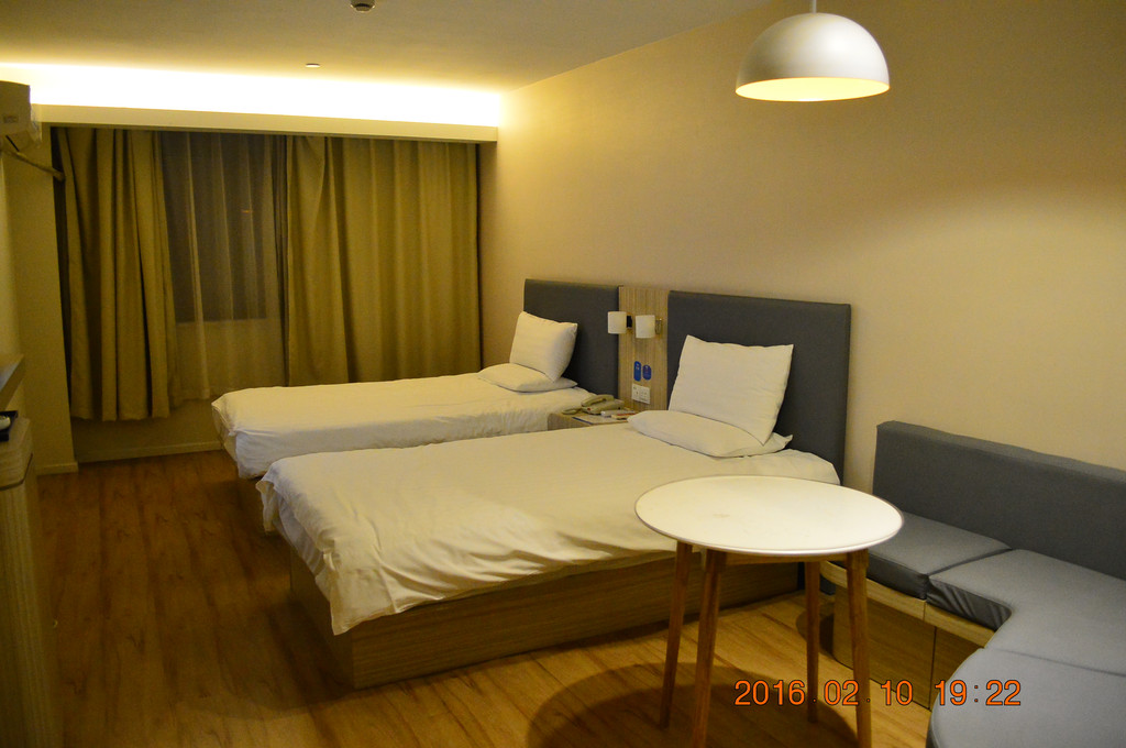 入住汉庭酒店宁波鄞州万达宁南北路店,金会员双床房111元。预付款的七折优惠房,不含早。此店距离万达广场约300多米,停车位较多,不临街的客房十分安静。这家店的装修为汉庭新版,比路桥的汉庭客房明显好。