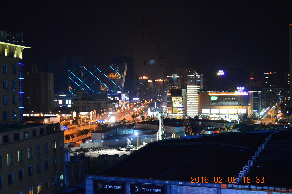 从酒店7楼拍摄的夜景,约300米外是印象城,有大卖场。晚上开车去附近的印象城,本来想吃肯德基,但看到肯德基已关门,于是逛了华润万家大卖场,买了方便面及火腿回酒店吃。