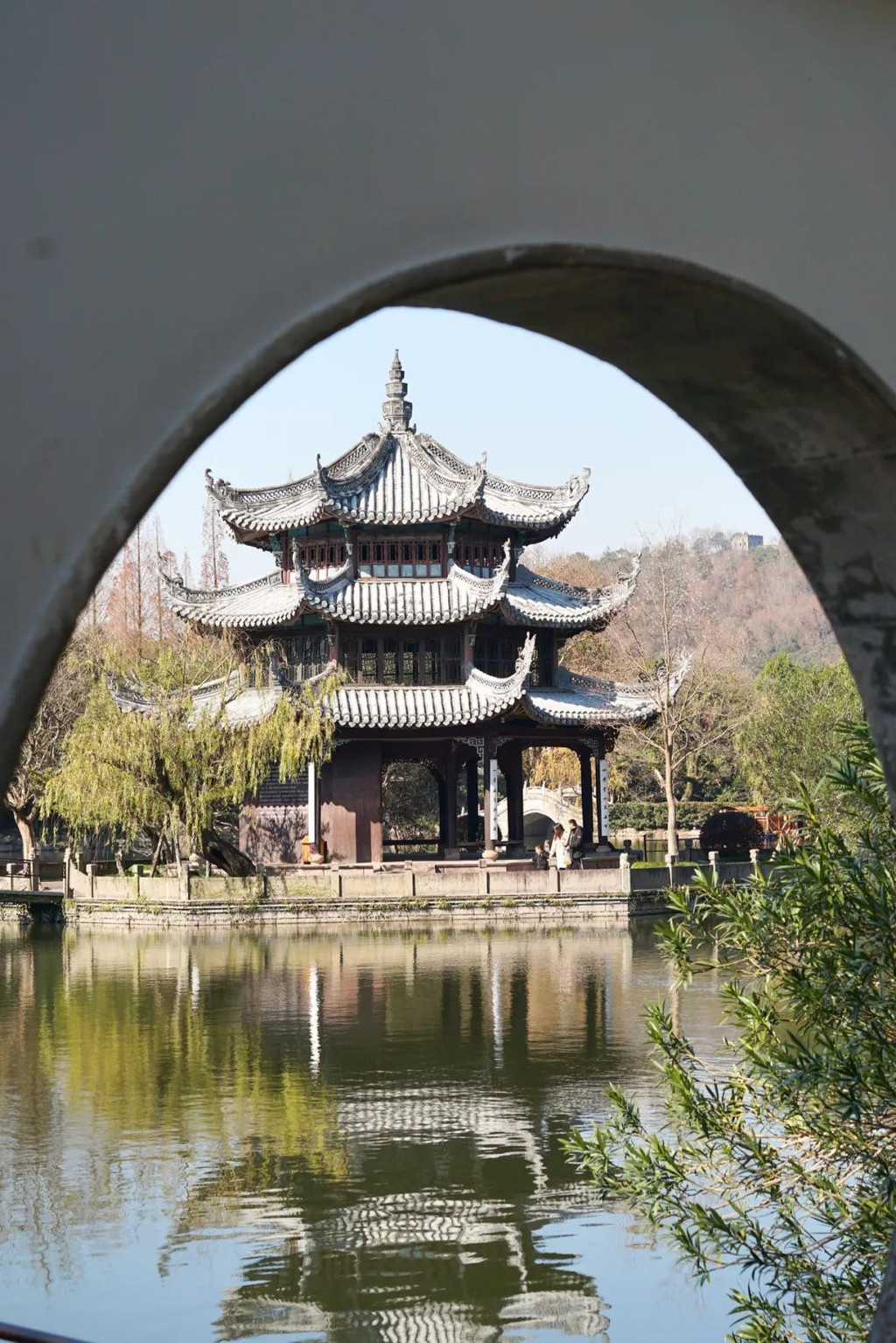 东湖面积不大,但是很精致的,廊桥、湖心亭等楼阁古典水波潋滟,一步一景,即便是冬日,也是充满着江南风情,拍拍照什么的也是很赞。