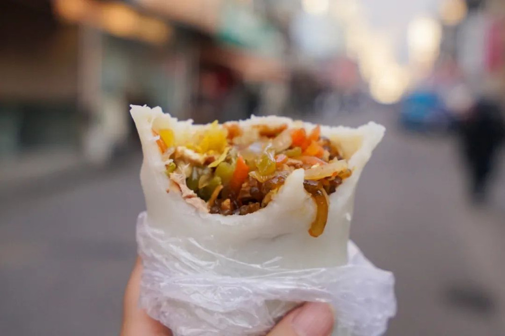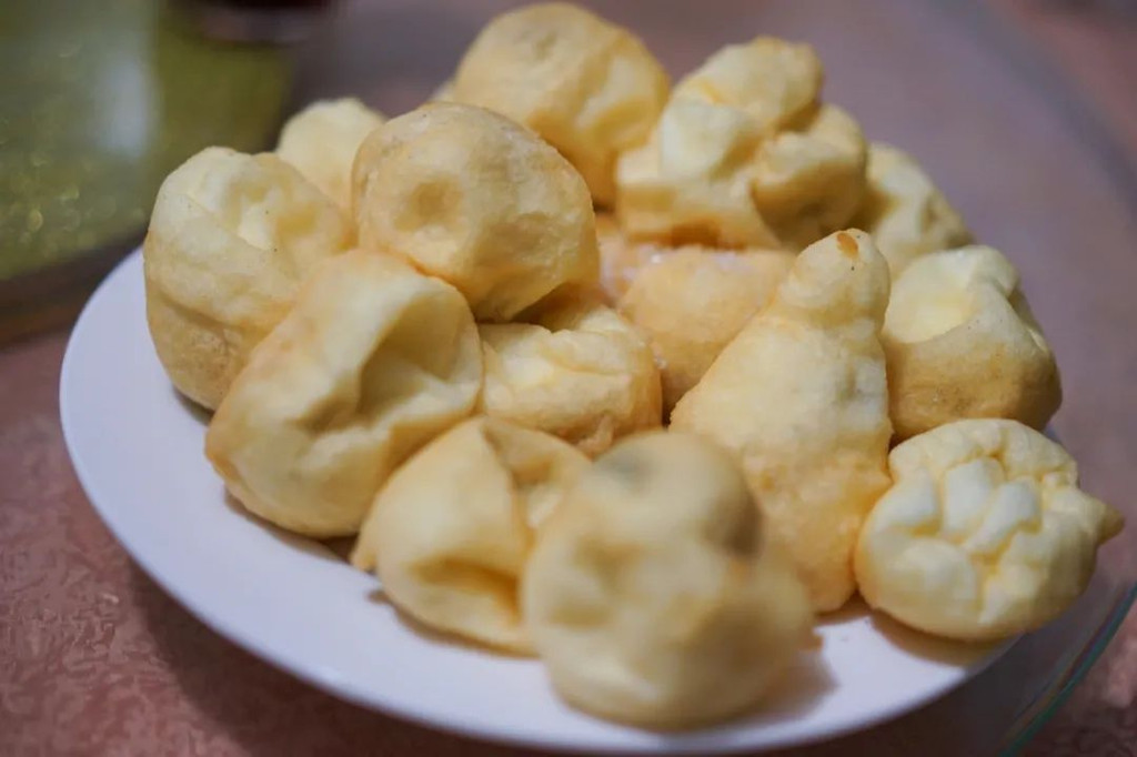 麦油脂,光听名字完全不知道是什么东西。实际上是面饼裹上各种蔬菜,豆面,肉等在放在锅里炸一下,作为主食,味道还不错。