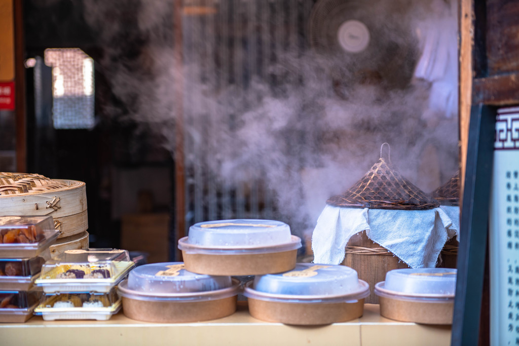 路过王阿姨的梅花糕,她主动请我们品尝;买了一斤蜜桔突然破了塑料袋,楼上晒太阳的阿婆就丢下来一个送给我们;卖发糕的当地人看我在拍摄,主动打开热气腾腾的蒸笼给我们拍照。这些细节虽很小,却足以打动人心。