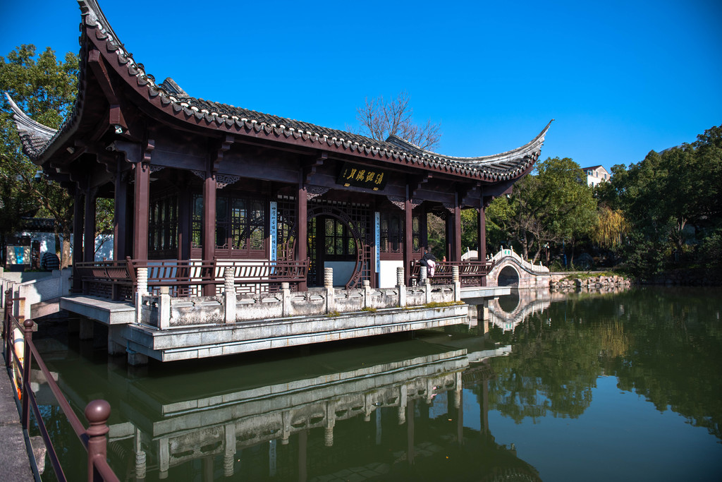 这里背山面水,三面青山环抱,湖心亭、流杯亭,还有趣味感十足的九曲桥和铁栏杆,深得大小朋友的喜欢。