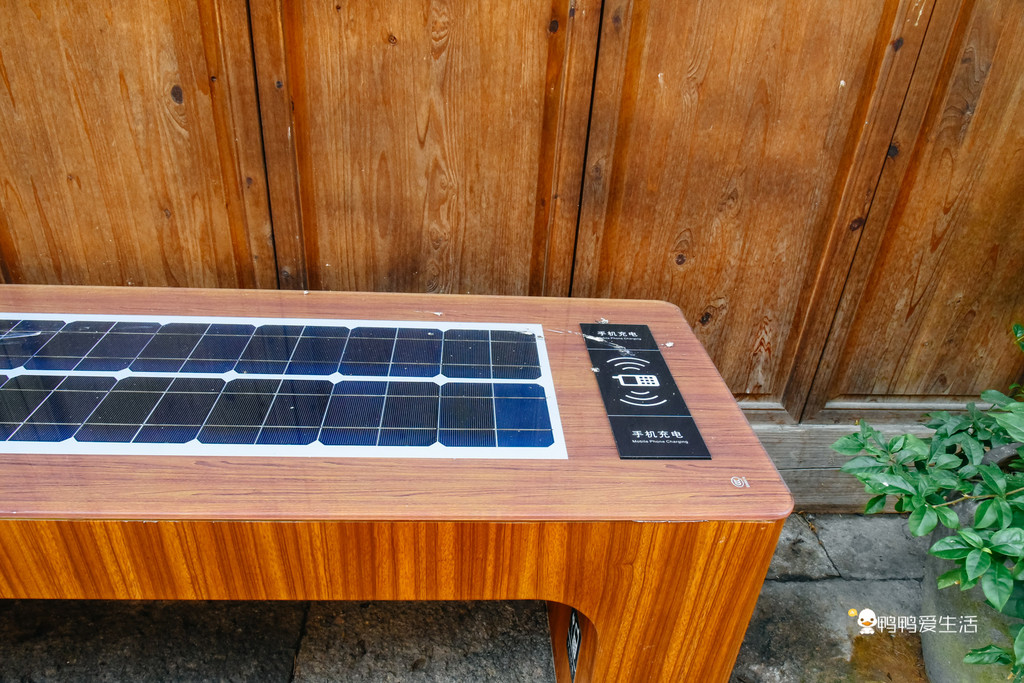街道的两旁贴心设计了一些休憩的木椅子,既跟老街的整体氛围一致,又给了游客休息的空间,而这个手机充电设计,更是凸显了人文关怀。毕竟当今社会,最怕就是手机没电了!