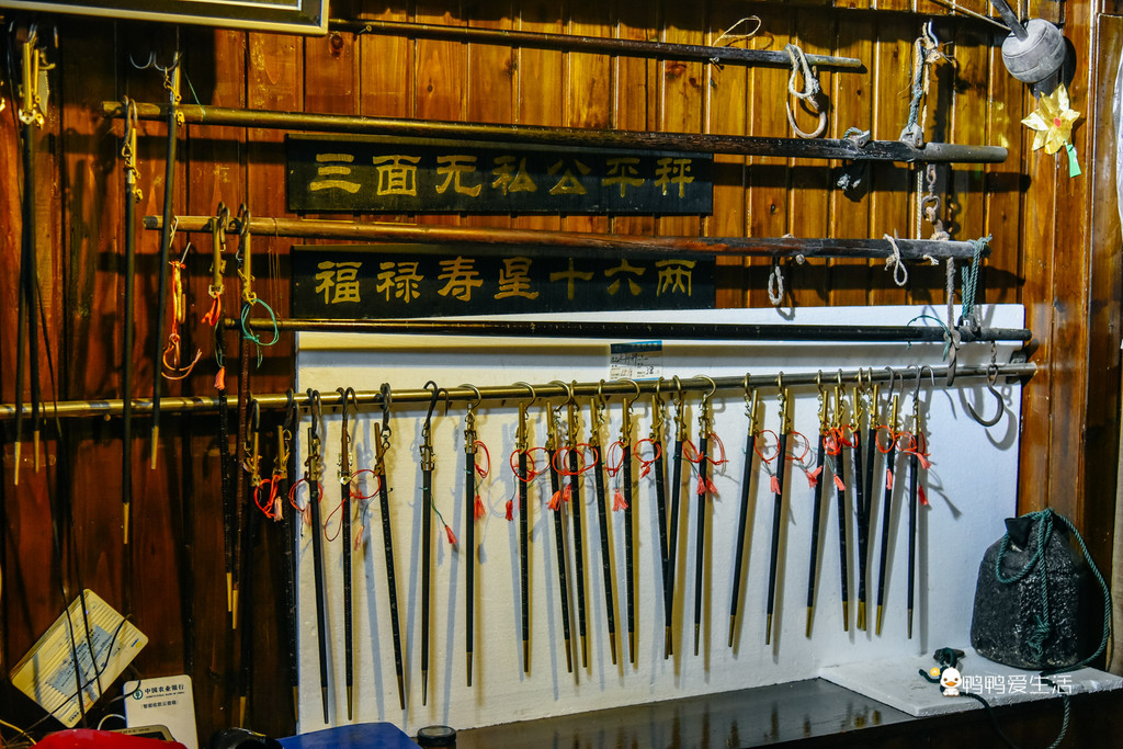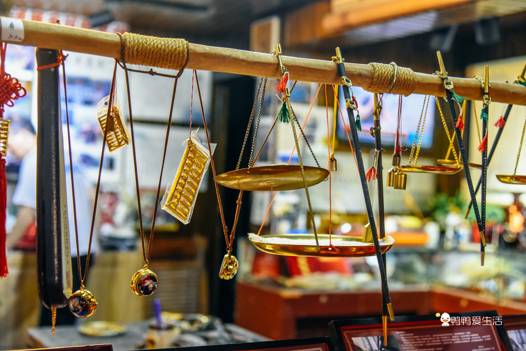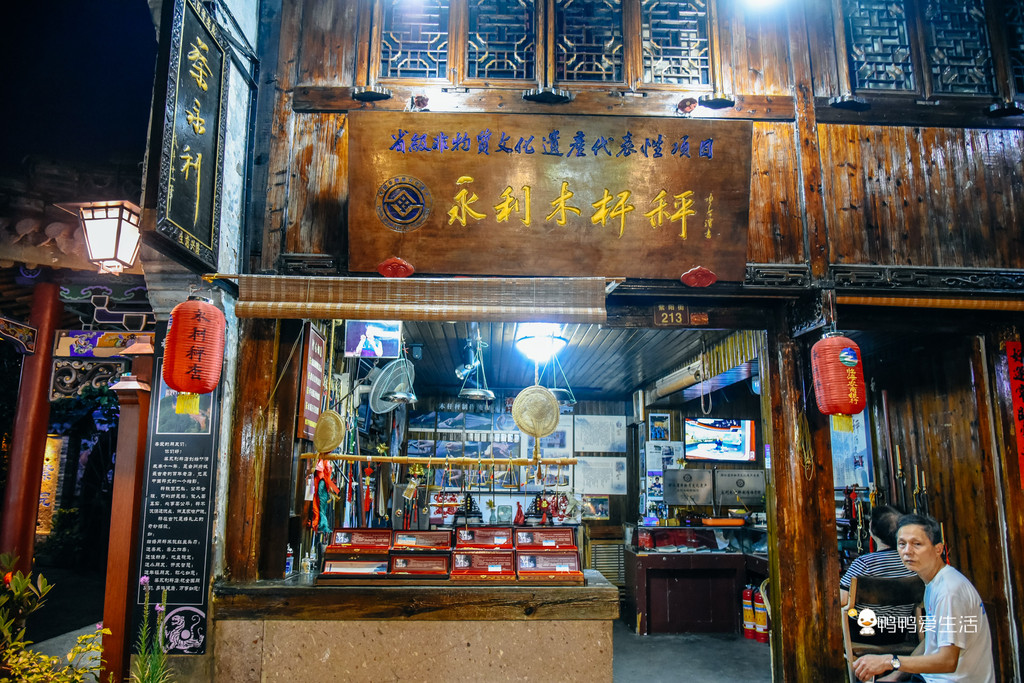 而老街上还保留了大量的原住民,不少非遗商家在这里有展示。在这家蔡永利木杆称,跟第五代传人蔡雪贞相聊甚欢。蔡永利秤店,创办于清咸丰十一年(1861),160多年过去,如今用木杆称的人也越来越少,但除了称本身,它也有更深刻的含义。秤不仅是一种计量器具,人们还把它作为一种吉祥之物。如今木杆称也与文创热点结合,来老街走走,带一把百年木杆称回去,称心如意好兆头。