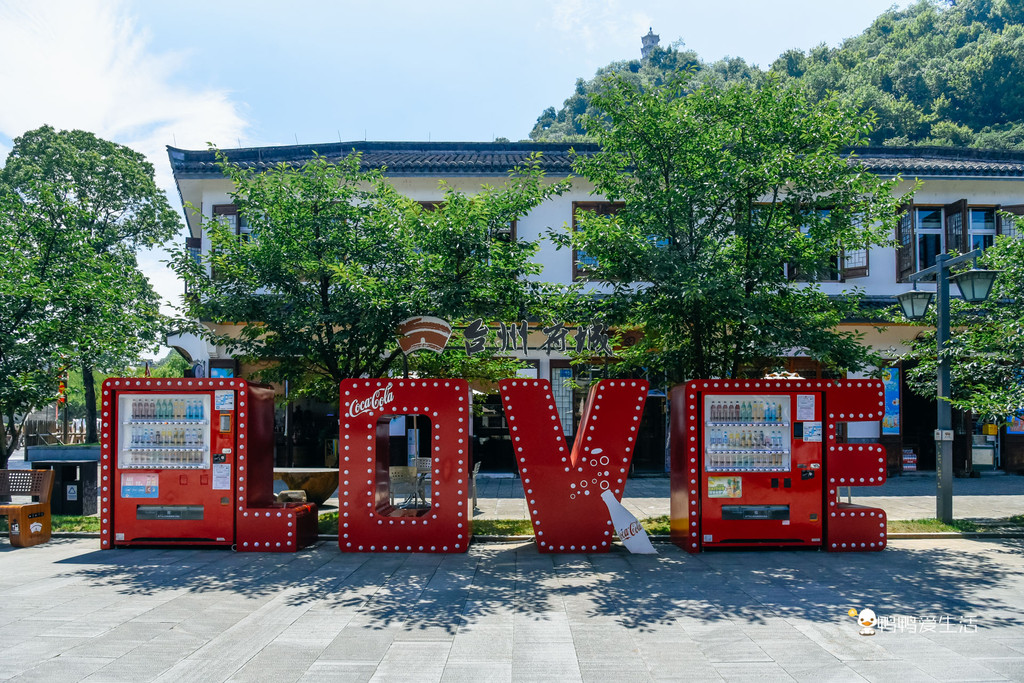 咖啡爱好者在紫阳古街也有好去处,靠近兴善门入口便是星巴克,瑞幸咖啡等知名品牌也在这里可以看到,连自助饮料机都是爱你的形状哦!