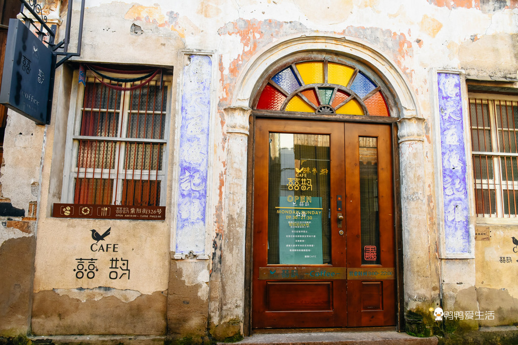 咖啡厅入口的这个镜面的小设计也适合打卡拍照,以另一种角度呈现老街。