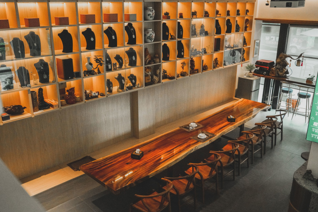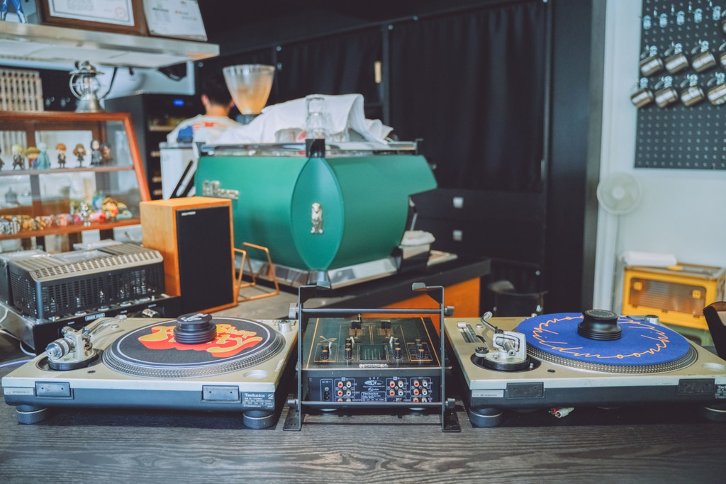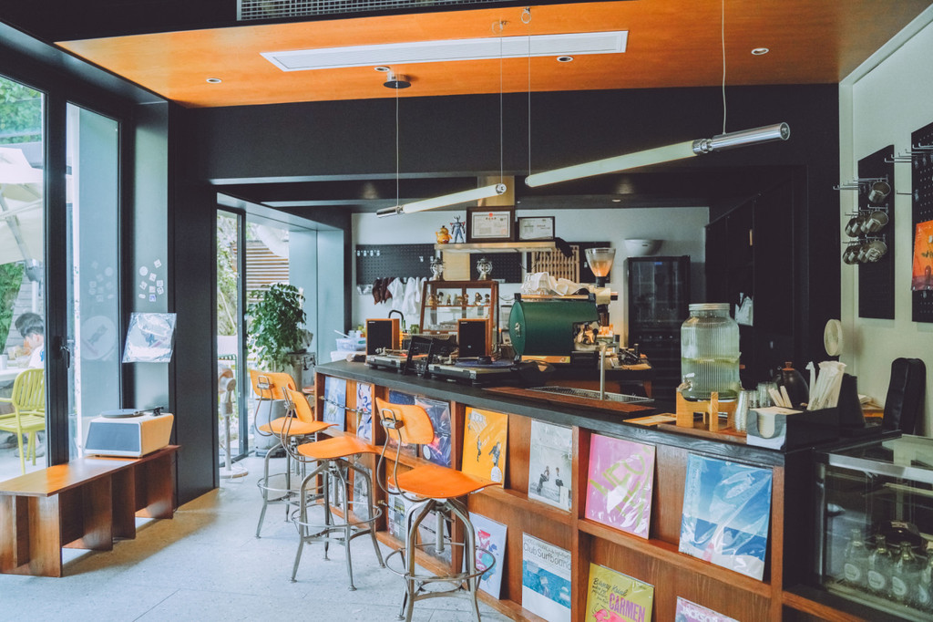 店主四处搜罗了一些老物件,每个角落都藏着主人的巧思。推开门,文艺的气息扑面而来,一排排的文创产品,吧台的桌子上堆满了旧cd。点一杯拿铁,靠在窗边听雨滴敲打玻璃,爵士乐声里,时间的流逝也变得缓慢温柔。
