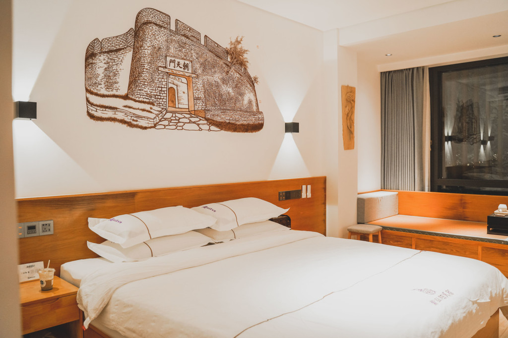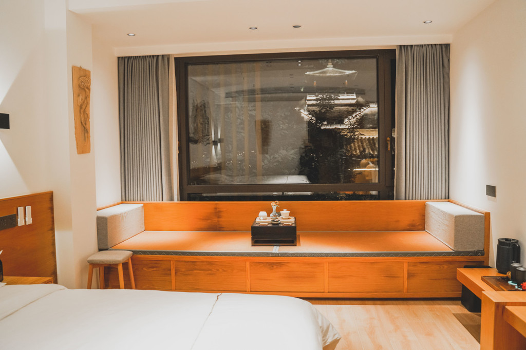 2楼和3楼就是房间了,房间装修复古典雅,宽敞明亮,大大的落地窗前,可以几人盘坐喝茶谈心。
