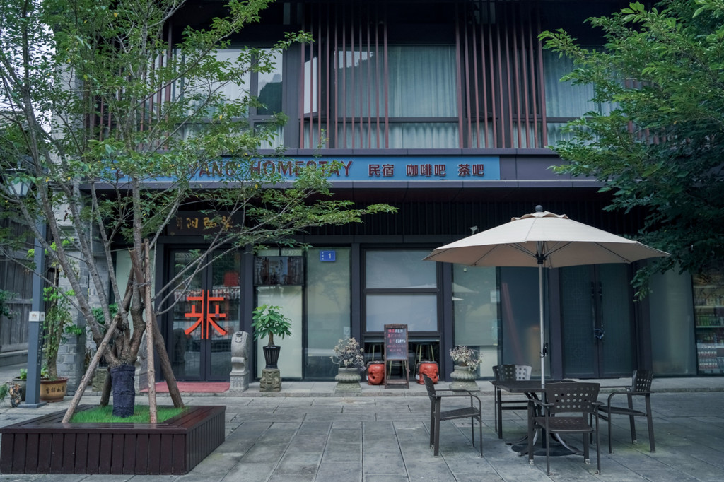 晚上就住在 紫阳 壹号街上的紫弘阳民宿。一栋三层楼的仿中式院落,崭新且透亮。