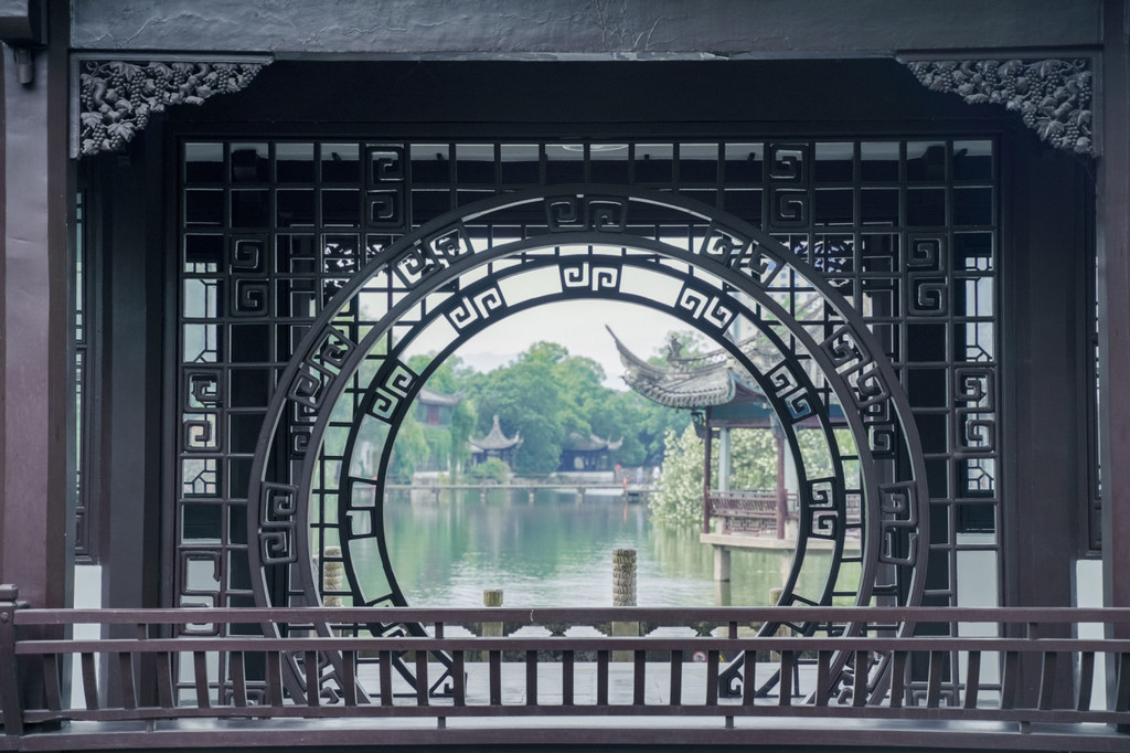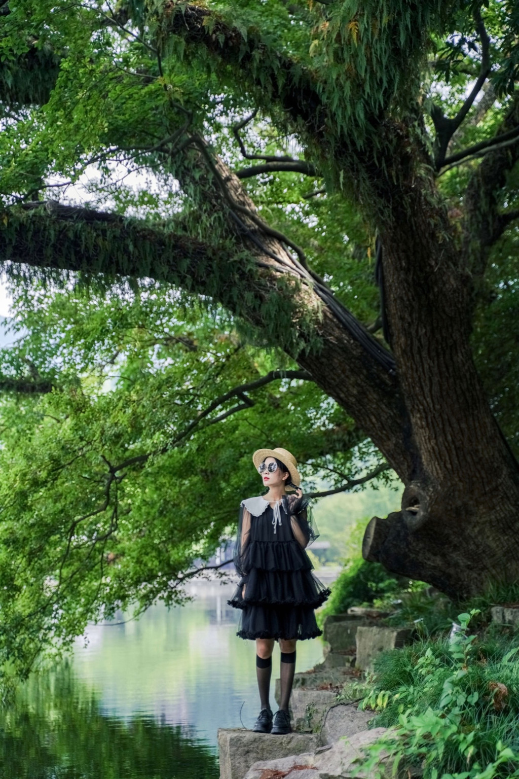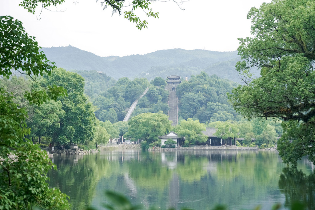 这样的山水风物,最适宜着一身带古意的衣裙,慢慢信步游览。