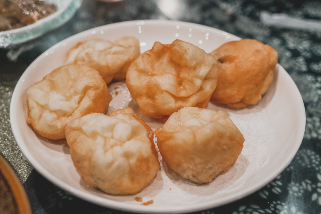 它看起来像“面团子”,但当我看过它的制作过程之后,万万想不到,它竟然是用纯纯的蛋清打成泡沫,再接着打,直到蛋清形成一种固体的“面粉”形状,之后包进豆沙馅,然后在油里炸制而成。