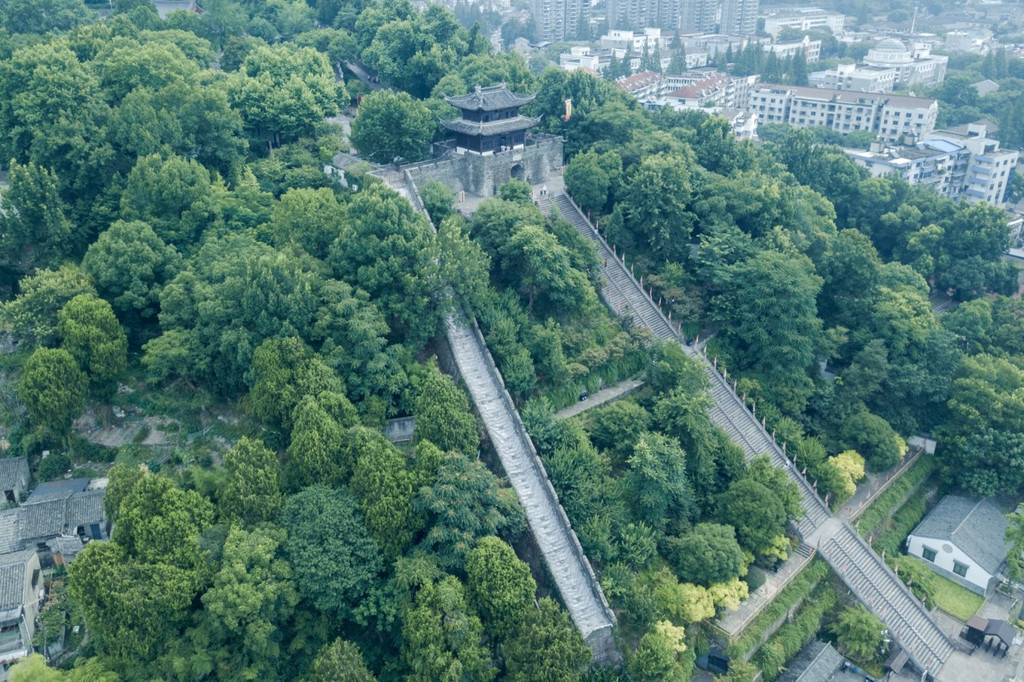 台州 府城十分的风韵与故事,九分都藏在了这一段城墙里。城墙全长6000余米,现存5000余米,东起揽胜门,沿北固山山脊逶迤至烟霞阁,于山岩陡峭间直抵灵江东岸,延伸至巾 山西 麓,依山就势,俯视大江,尤以北部最峻,被称为北方明长城的“师范”和“蓝本”。