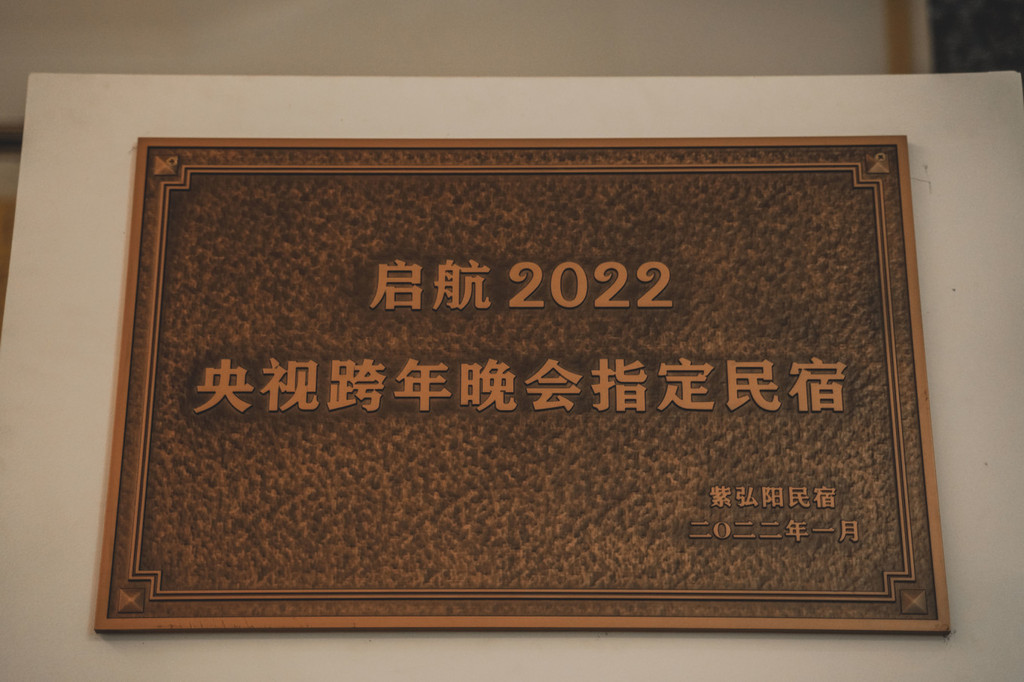 楼梯间的一块“央视跨年晚会指定民宿”牌匾特别醒目。