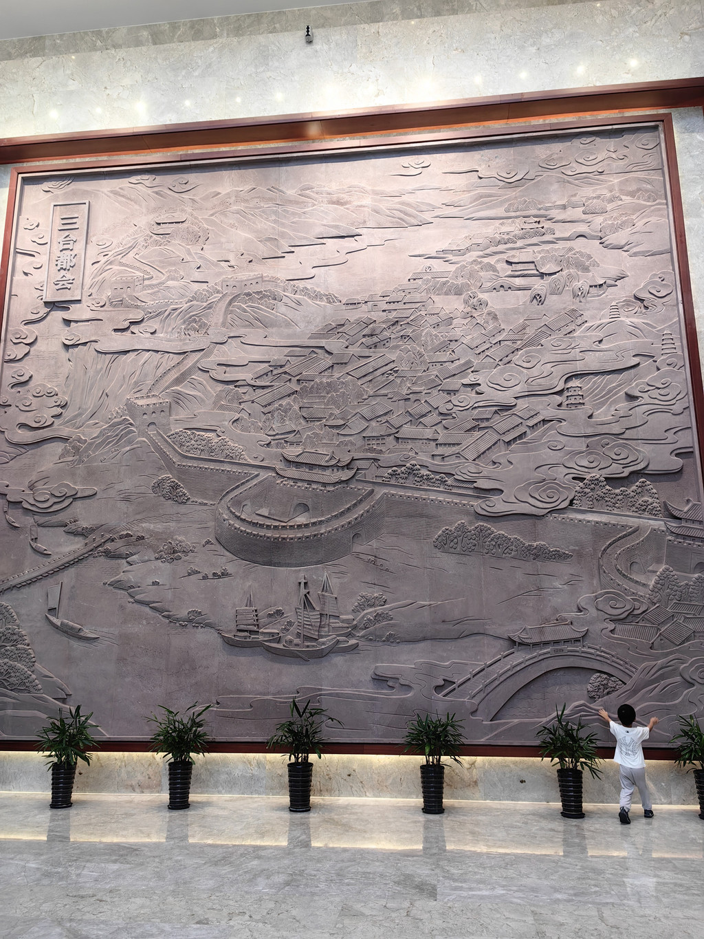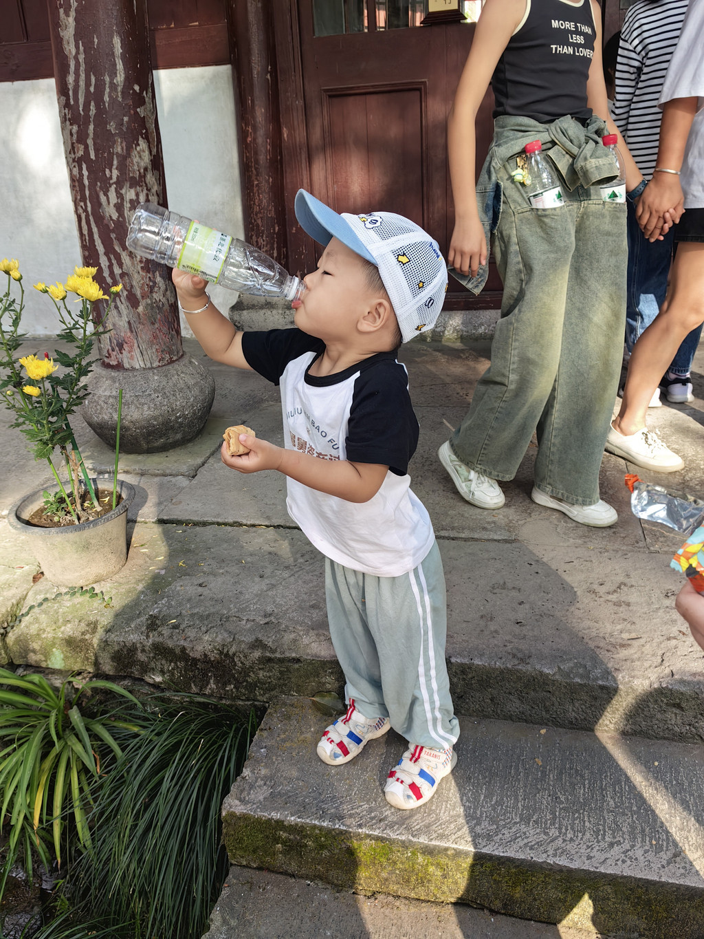 赭溪老街沿着赭溪两岸开发建设,发源于天台山的赭溪,至国清寺双涧汇流后向西流经永宁村,而后穿城而过,流入始丰溪,这条溪流是老街的灵魂,溪水清澈干净,溪边有步道,小朋友在小溪里玩儿水,我们就沿着步道走走,感觉特别好。毕竟是经过专业园林大师设计的景观,一楼一阁,一草一木,确实好看,看遍了千篇一律的古镇古街,来感受着现代人的审美,也确实会有不同的味道。