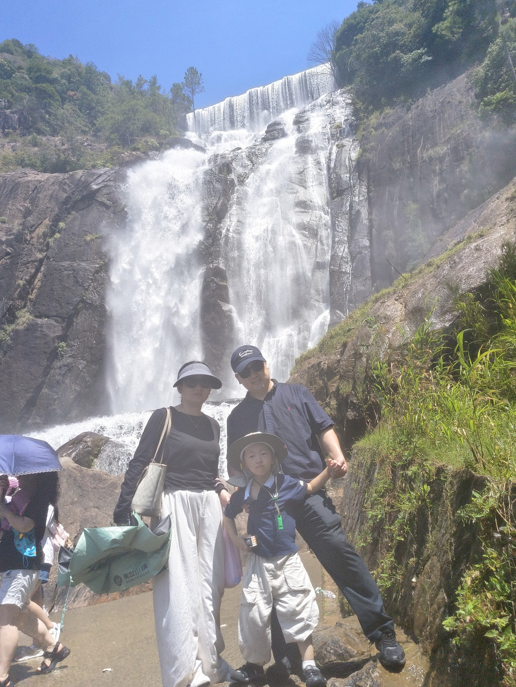 离开大瀑布,琼台仙谷的奇景正等待探访。沿着溪流栈道漫步,两侧悬崖耸立,怪石嶙峋,阳光透过水雾折射出七彩虹光。登至高处俯瞰,整个峡谷云遮雾绕,突然明白为什么李白要在这里问青天——云雾真的会突然吞没所有参照物,让人分不清是站在海拔1098米的山顶,还是漂浮在云海里的孤舟。