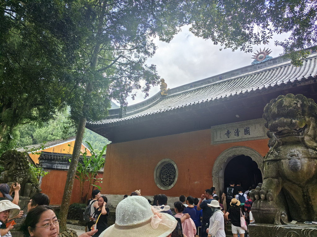 国清寺位于县城北3公里,始建于隋开皇十八年,现存建筑为清雍正十二年奉敕重修,初名天台寺,后取“寺若成,国即清”,改名为国清寺,寺门前的一对汉白玉狮子庄严肃穆。隋代高僧智者大师(智顗)在国清寺创立天台宗,为中国佛教宗派天台宗的发源地,影响远及国内外。鉴真东渡时曾朝拜国清寺。日本留学僧最澄至天台山取经,从道邃学法,回国后在日本比睿山兴建延历寺,创立日本天台宗,后尊浙江天台山国清寺为祖庭。