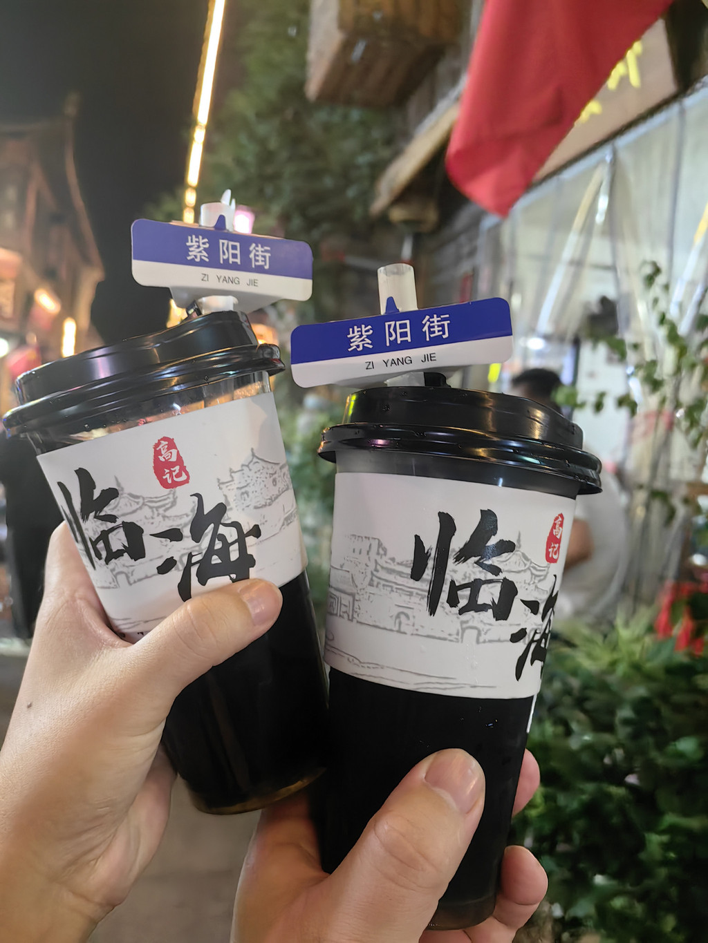 紫阳古街是活着的宋代街市标本。漫步青石板路,两旁明清木构店铺林立,海苔饼的香气勾人驻足,刚出炉的饼皮酥脆掉渣;蛋清羊尾外酥内软,甜而不腻。深入巷弄还能发现更多惊喜:乌饭麻糍裹着豆沙,撒上松花粉时的清香;龙兴寺旁可以体验宋代点茶与现代咖啡的奇妙融合。
