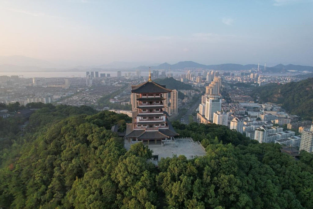 山顶还有精美的仿古建筑白云阁,站在阁前可以一览整个台州的城区全貌。