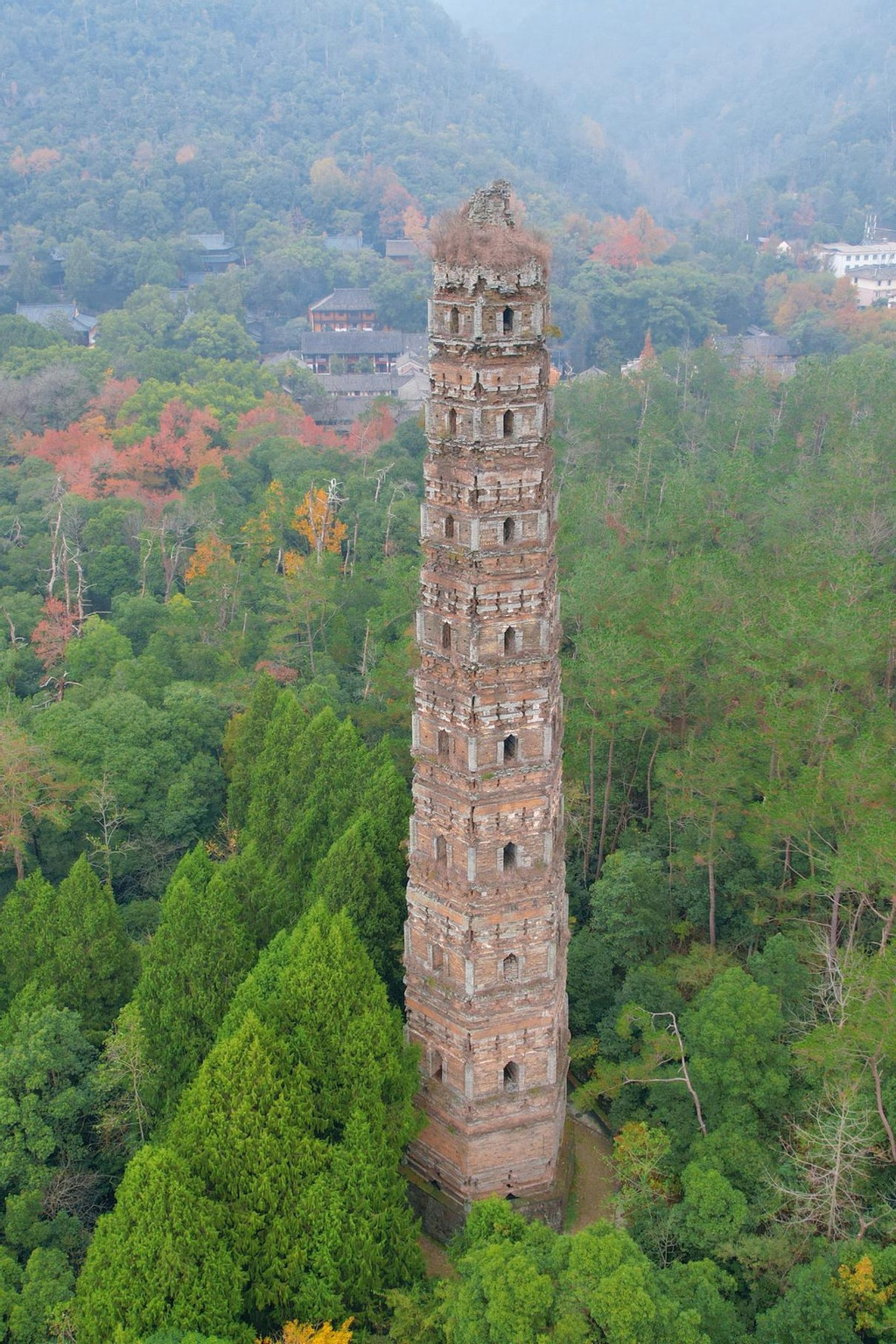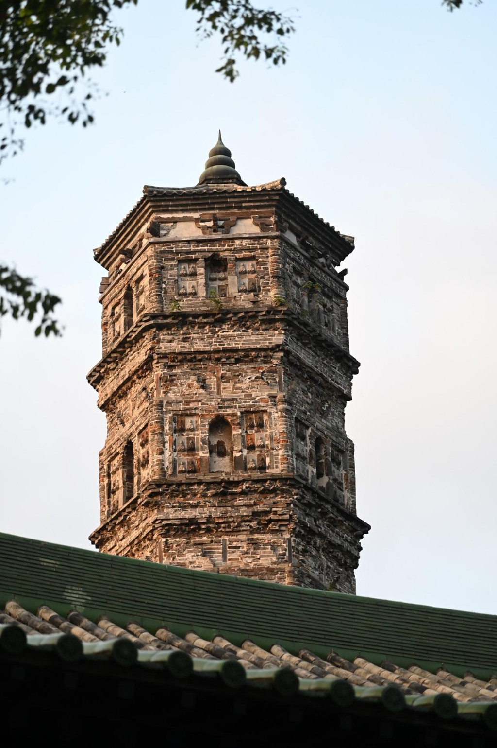 隋塔的话,它始建于隋开皇年间,也是国清寺的标志建筑,已经有1400多年。整个塔高59.3米,六面九级,空心,塔身还可以看到栩栩如生的造像。