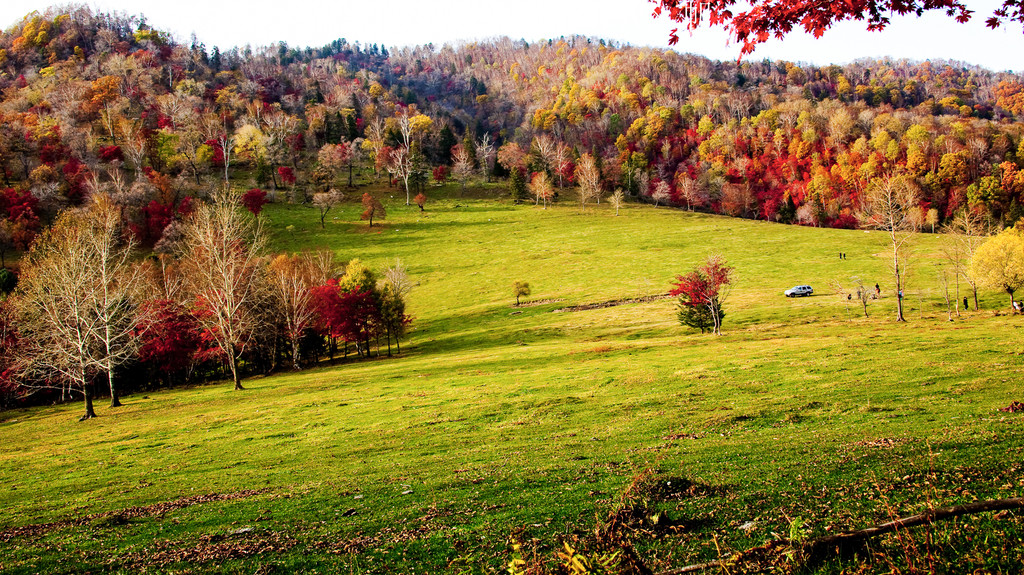 岭上枫林位于长白山余脉的一座大山之巅,具体的位置是临江市的花山镇椴木松 8 队, 景区纵深 15 公里,宽为 5 公里,幅员面积 75 平方公里,是一个既有高山草原,又有原始森林的景区,这里的春秋两季都是最美的季节,春天繁花似锦,秋季层林尽染,而我们到来的时候正赶上一年一度枫叶节的前夕,山上的茂密的原始森林已经呈现出五彩斑斓、美轮美奂的景像。