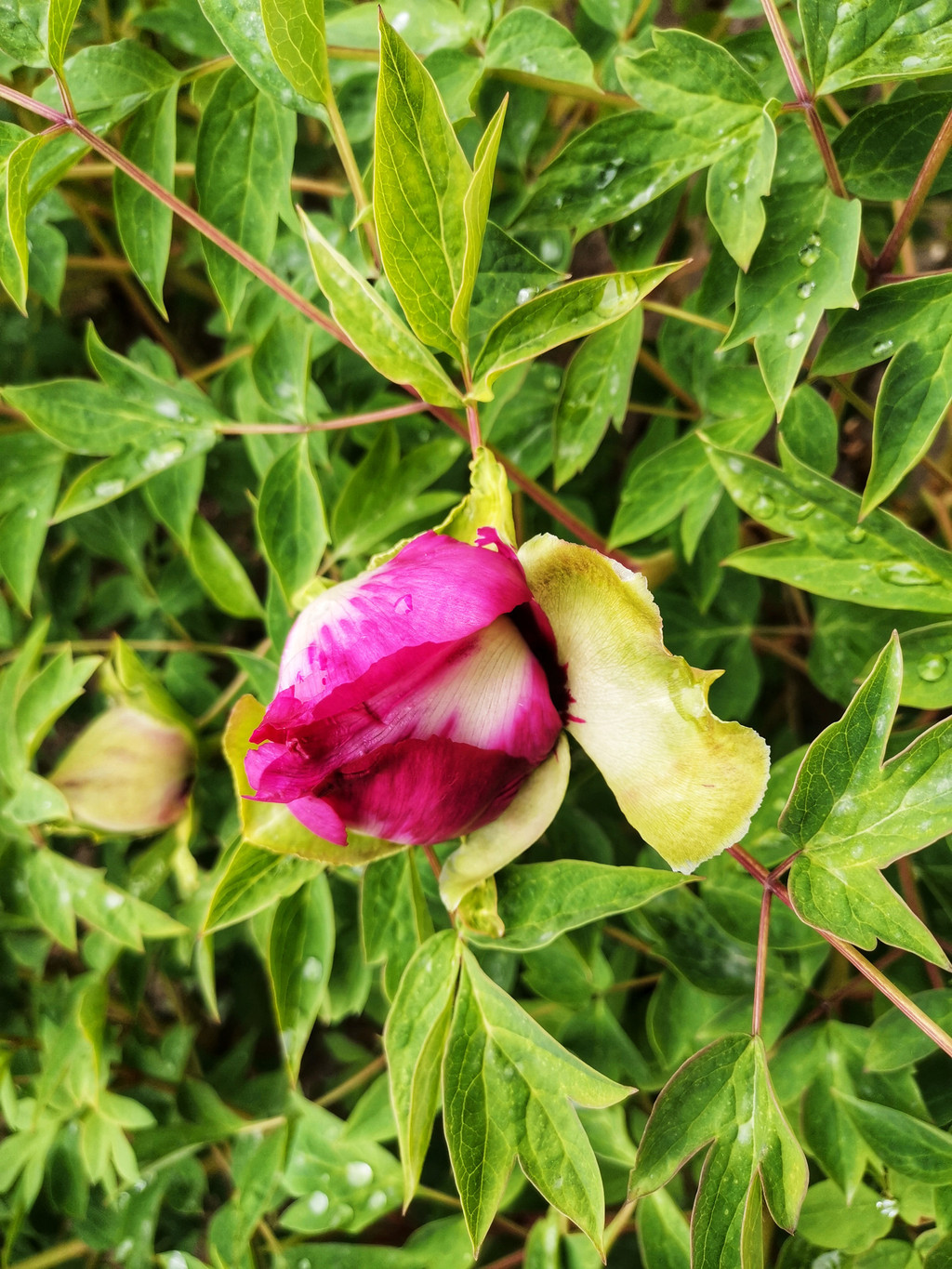 今年的天气,说变就变,一会你穿着半截袖招摇过市,一会你穿着秋裤瑟瑟发抖;一会可能是春暖花开,一会又是雪花飘飘。顺带着天气的变幻无常,连国色天香的牡丹花也羞答答起来,总是含苞,就是不绽放,望眼欲穿了许多人。