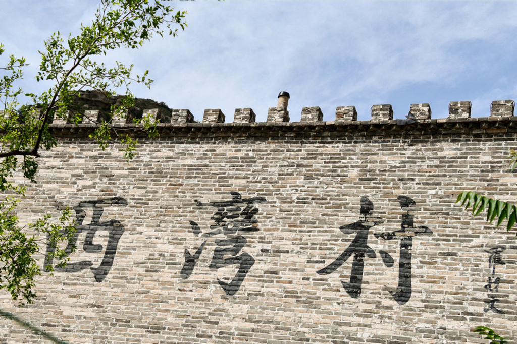 西湾村宅院墙壁上写着“西湾村”,它是由 中国 文物学会会长罗哲文所题。