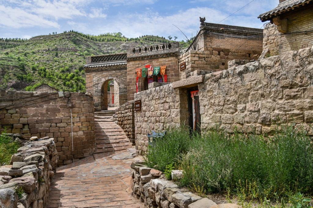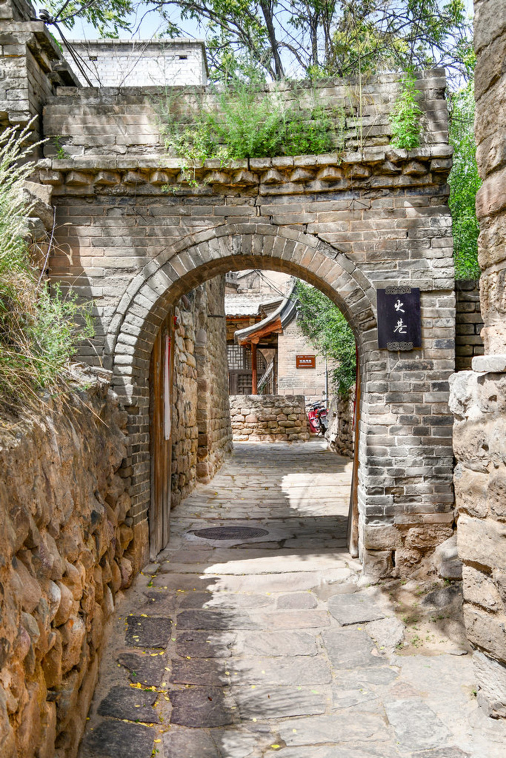 西湾村西湾村村墙 金、木、水、火、土的五条石砌街巷将三十座宅院连为一体,周以高墙围护,形成了一个庞大的城堡式封闭空间,仅在南向留大门三座
