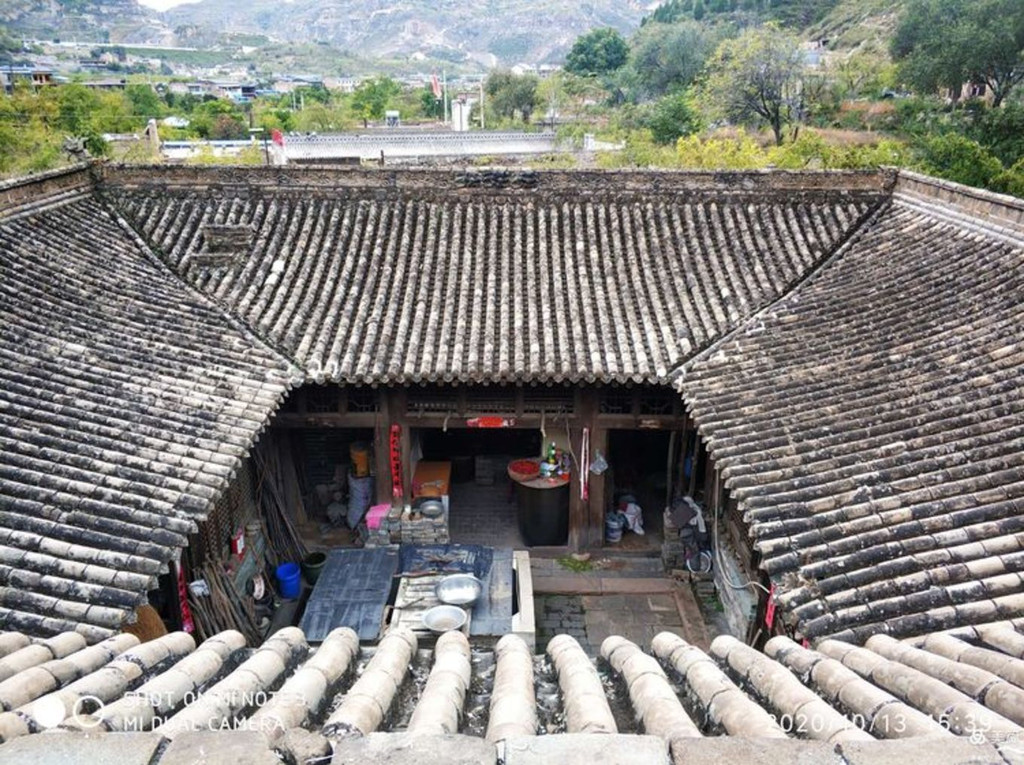 西湾村进入院内正面都是明柱厦檐高圪台院,南面是客厅,或者是马棚、厕所、大门。因为它是顺着山坡修建的,下面院子的屋顶,就是上面的院子,这里被称作“脑畔”。
