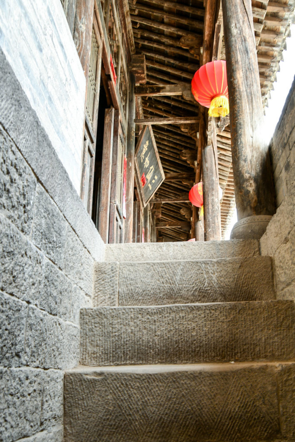 西湾村夹在两侧高房中的石板小路原汁原味。
