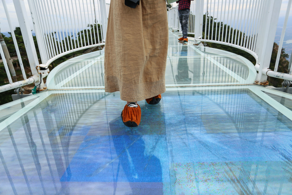 特别是升级为声、电、光一体的5D效果后,更是引来无数游客流连驻足。玻璃桥横跨峡谷之上,将山峦间的风景展现的一览无遗。在桥上,不仅可以全程体验“悬空行走”,更能体验玻璃碎裂时的惊心动魄!