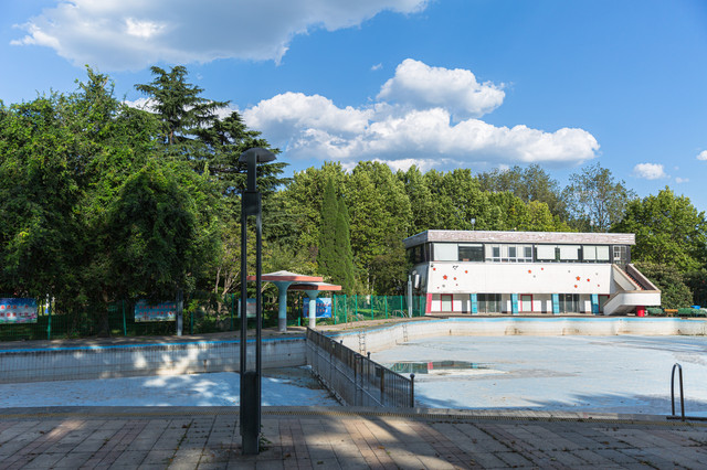 3 游泳中心是在人工湖的基础上改造而成,泳池边上有一块纪念碑记录了人工湖的信息“中国人民解放军 五四八九八部队 人工湖义务劳动 纪念碑 一九八七年九月十二日”。游泳中心只有盛夏才开放。