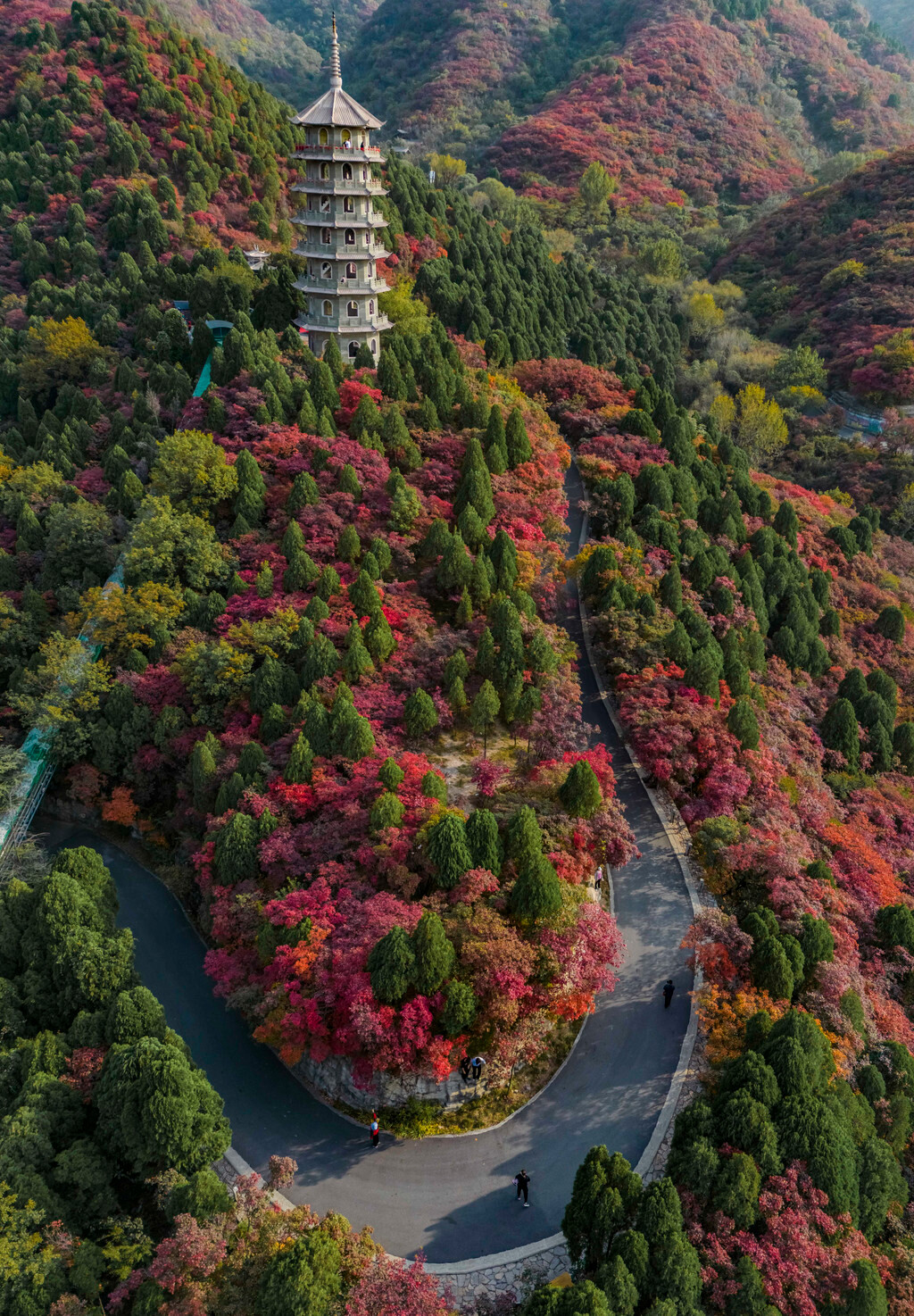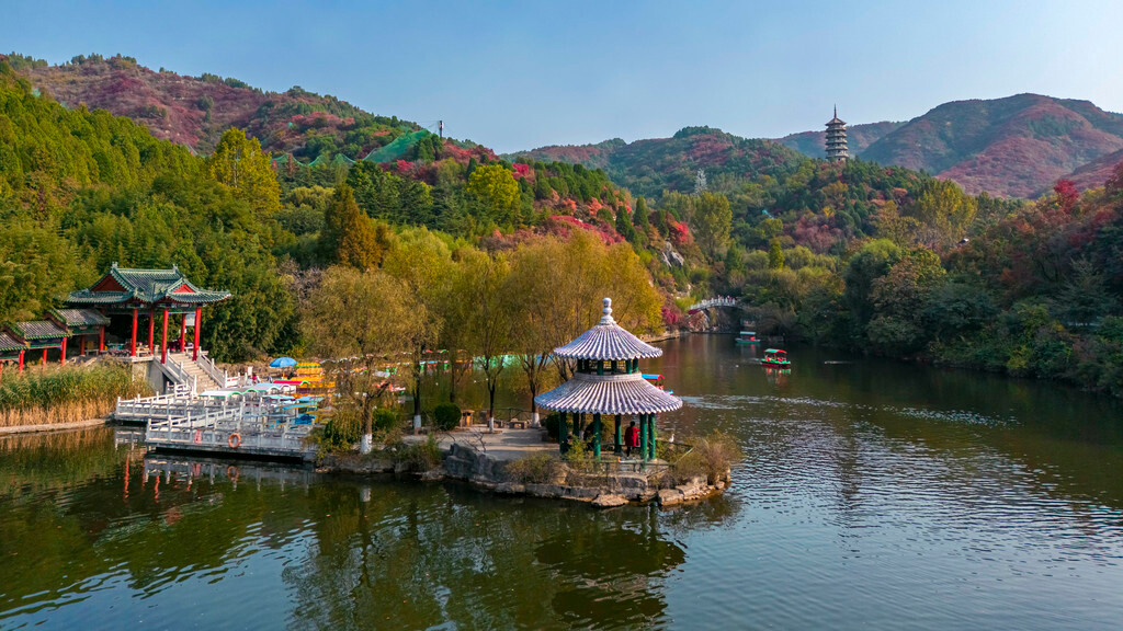 红叶谷位于济南市南部山区,距离市区约40分钟车程,好在有红叶谷专线公交65路车直达,所以交通不用担心可以说是非常方便。作为国家4A级旅游景区,红叶谷的景色也是非常丰富,有红叶环山路、古塔、秀湖、飞鸟等等;这其中红叶最集中的地方就是【万叶塔】,可以步行前来也可观光车直达,观光车30元全程4个点位都会停靠,相对来说要玩得轻松很多。