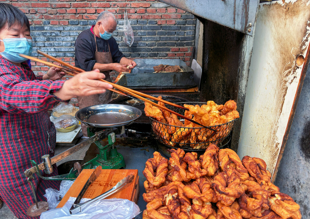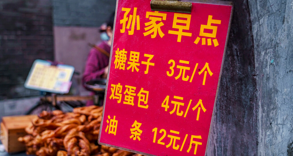重点是价格很实惠,一份糖果子3元,一个鸡蛋包4元,一斤油条12元,说起来北方的早餐也是很有趣,油条不是像南方这样按根卖,而是按斤卖!当然分量也是特别顶,半斤都能吃到撑。