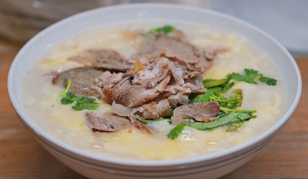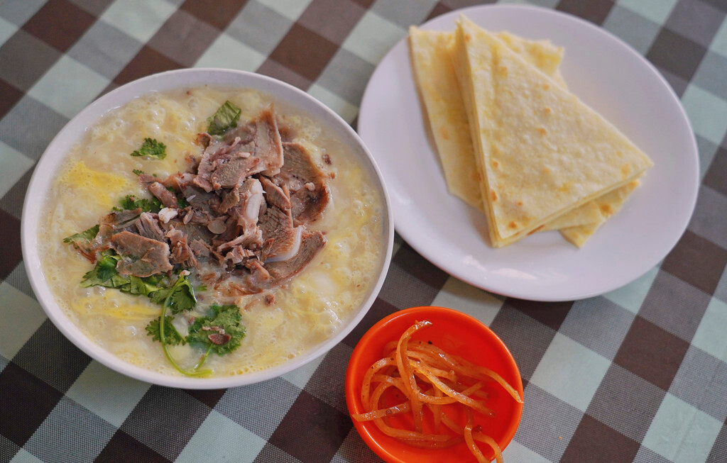 这家店主打“羊肉糁汤”,很特色的是会先放鸡蛋打出泡沫,然后与麦仁调和,并将新鲜熬制的羊肉汤冲入碗中,再放上一份现切的羊肉片,共同打造出这一碗香气扑鼻的汤品。另外还可以点上一份博饼,配上小咸菜一起吃口感更好,堪称来济宁旅游的必打卡风味,大家收藏起来,到时候过来别错过~
