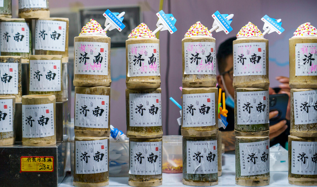 就像北京的豆汁一样,【甜沫】也是济南独有的怪异美食,虽然名字叫做“甜”,实际上喝着却是咸味,这是一种以小米面为主熬煮的粥,里面有豆皮、木耳等各种小菜,配上油条、鸡蛋包,不到十块钱就能吃到又撑又爽。