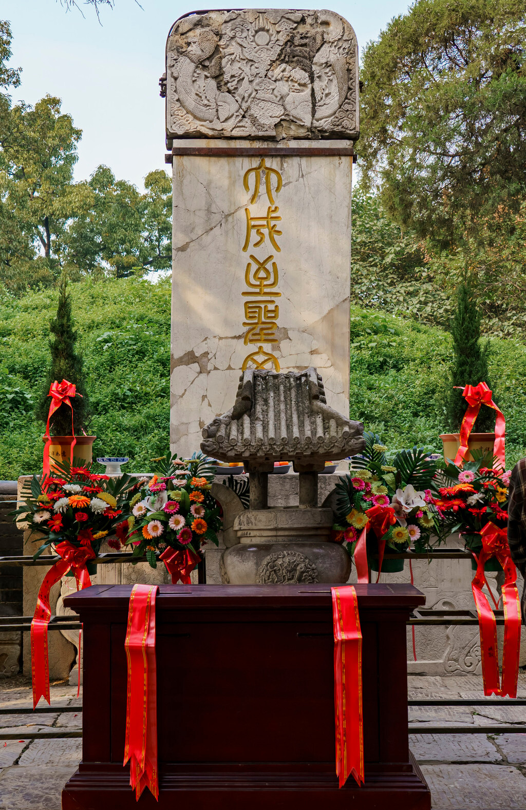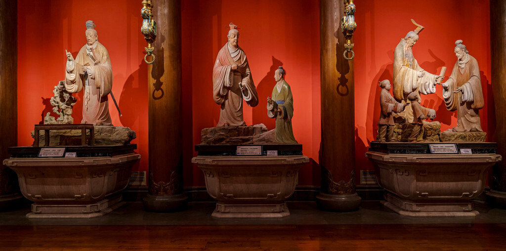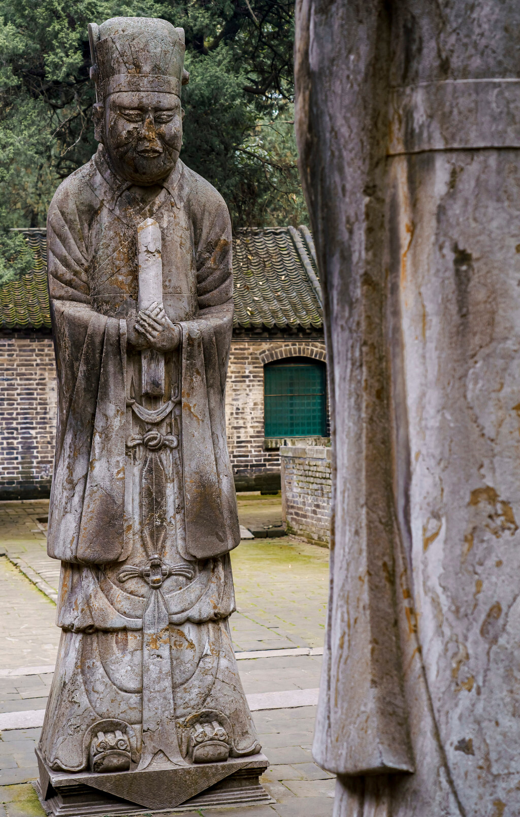 孔林中的墓地也分为了直系和旁系两大区域,正式进入内部核心区域时,还会经过一座大殿,殿前竖立着文臣与武将的巨大石像,仿佛在守护着孔子及直系后代的安宁。