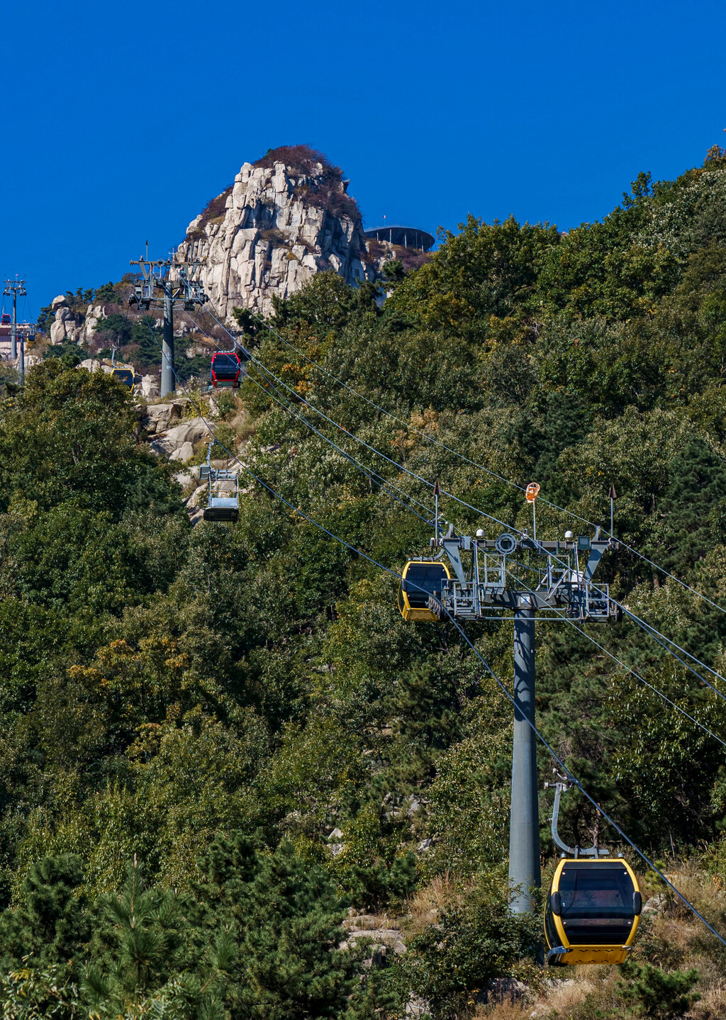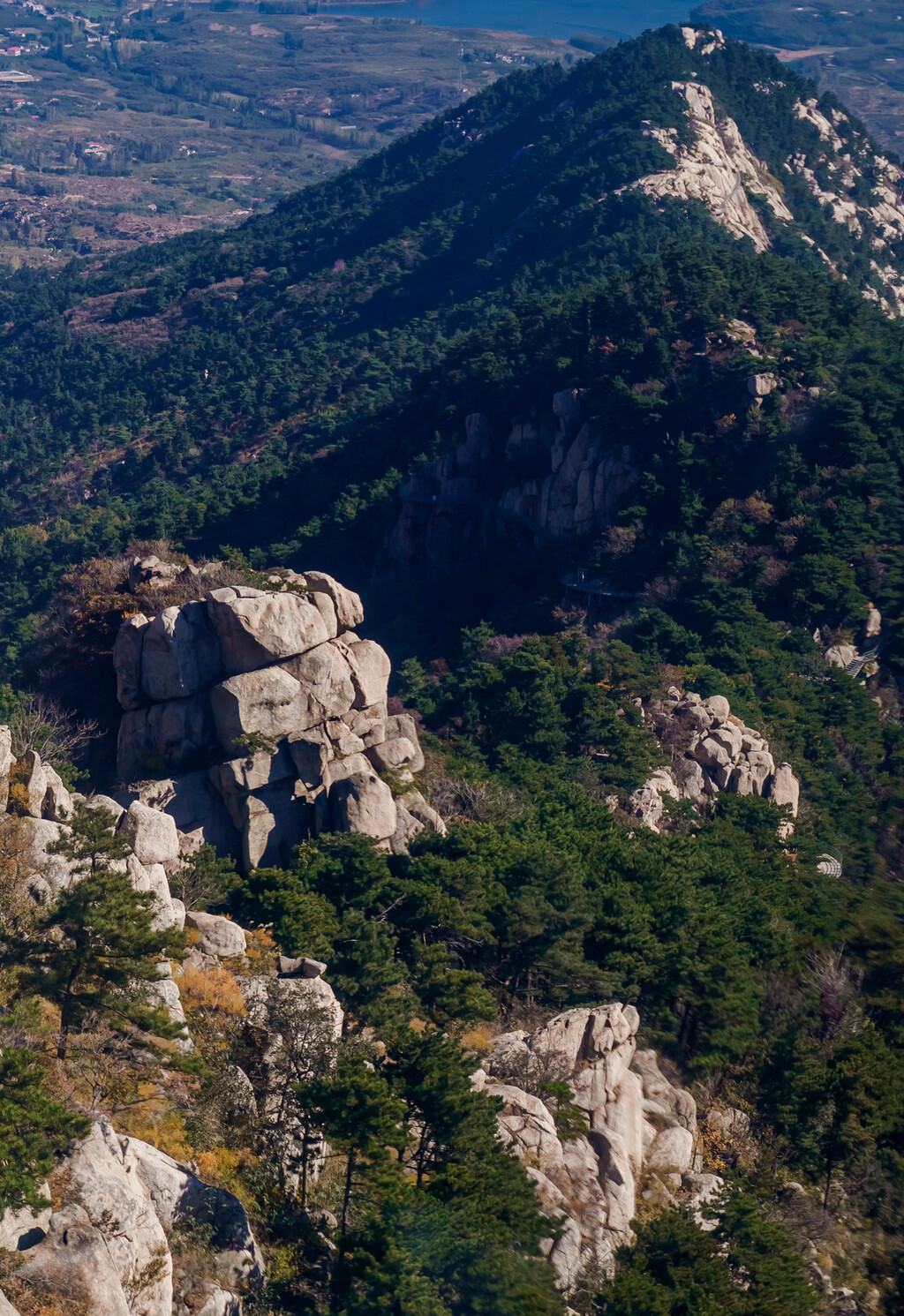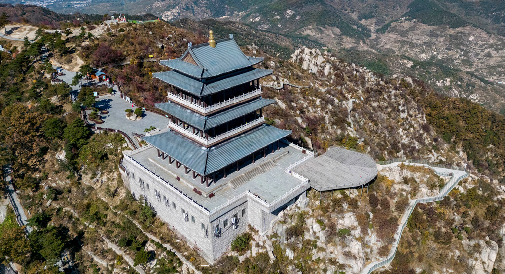 索道下车处,就是一个巨大的观景平台,在这里可以平视对面的玻璃栈桥与山间风光,往上爬10来分钟就是【望海楼】,这是整个蒙山看日出的最佳处,视野极其开阔,可以一览山下平原美景。