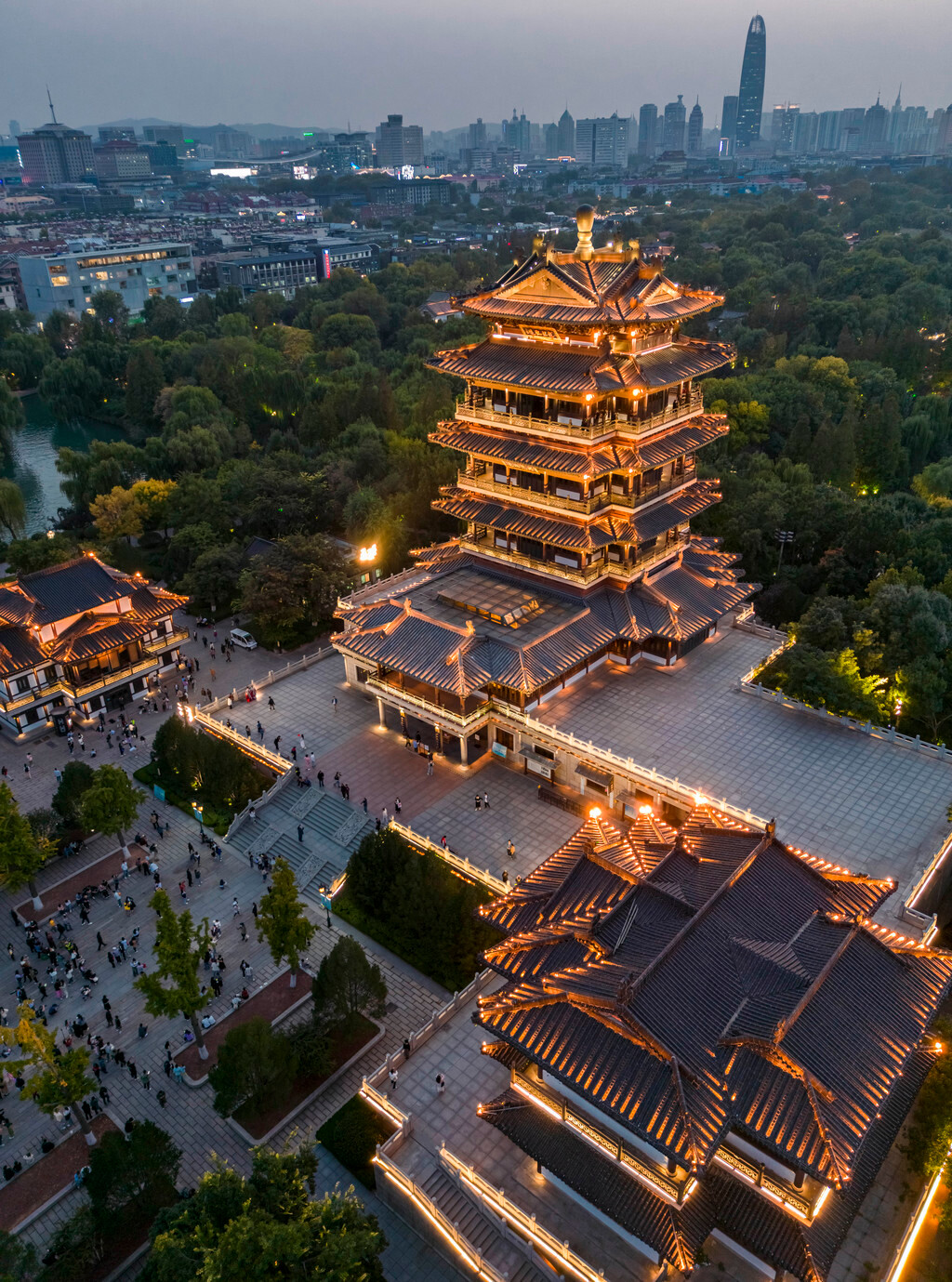 如今在大明湖的最高点【超然楼】旁还打造了一条夜市街,街上各种特色小吃、纪念品都很不错,大家可以在这里先吃一点东西,然后等着超然楼亮灯仪式,也是极好的体验。特别是超然楼,可以说是目前大明湖中最火爆的景点,也已经成为这座城市的超级IP,白天可以登楼尽览湖光山色,晚上则有热闹的“亮灯仪式”,更是吸引了无数的游客前来围观。