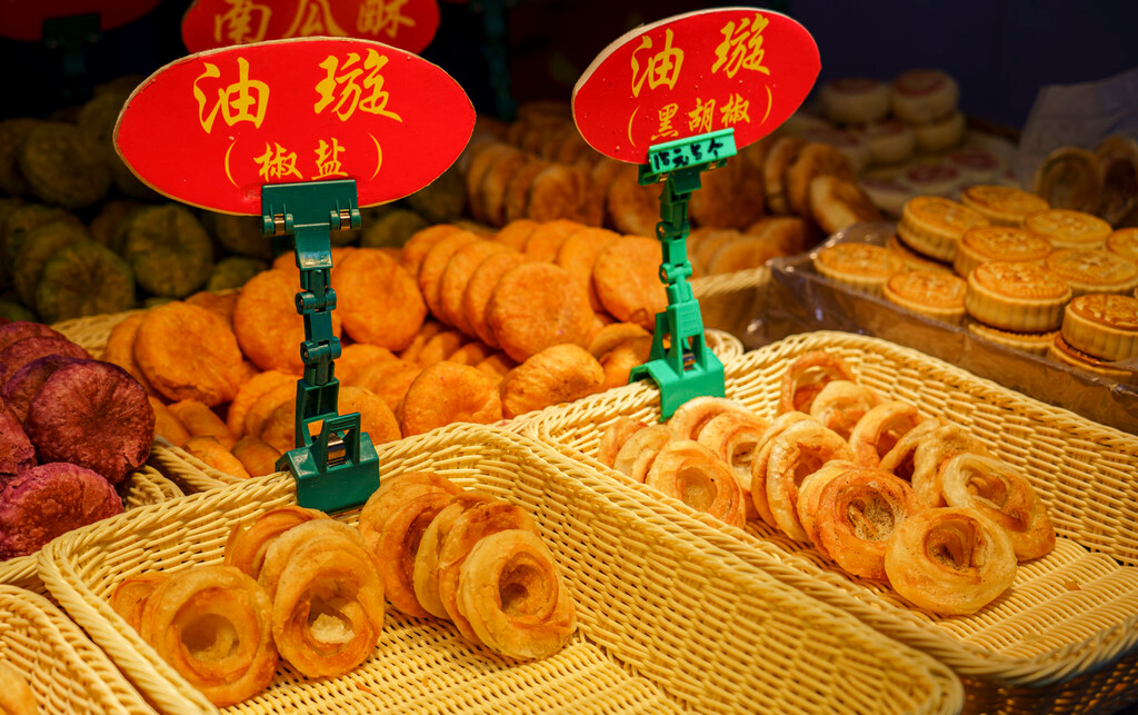 宽厚里的整条街上都充满了人间烟火气,拍照很出片,好吃的也不少,像我这次就打卡了肥肠包大葱、绝情爆肚、烤鱿鱼、大生蚝,味道不错价格也不算贵。当然,也少不了济南本土的经典美食“油旋”,主街上卖到3元一个,巷子里会有2元可以买到的小店,作为济南小吃的代表,油旋外皮酥脆,内瓤柔嫩,葱香透鼻,很值得尝一尝~