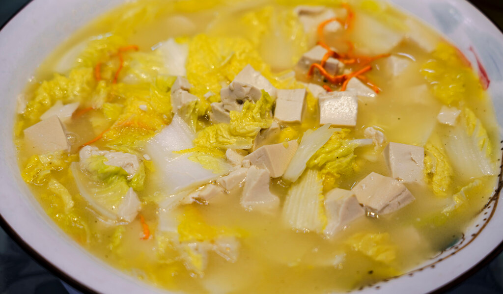 泰山三白以“白菜、豆腐、水”作为原材料,这是一道很清淡的风味菜,主要依靠的是白菜的鲜和豆腐的嫩,配上泰山优质的水,配合之下让汤汁微甜清醇,自有不可言说之滋味,堪称一绝~