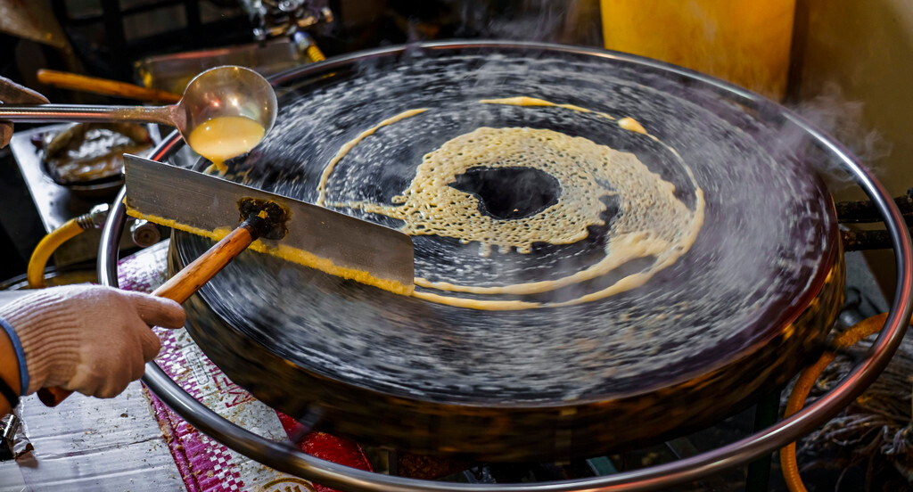 老东门早市更多的是方便济南本地人购买蔬菜瓜果、鱼肉米粮等日常所需,而【民族大街市场】则更偏向于美食属性,这里充满着生活气息,各种地道的小吃在这里都能找到,上百家美食店铺分布在几百米长的街道上,绿豆饼、甑糕、手撕排骨、香酥千层饼、爆浆酸奶大麻花、烤鱼等等都很好吃,重点是价格真心便宜,一圈下来看到的各种美食都是几块钱,很少有上2位数的消费。