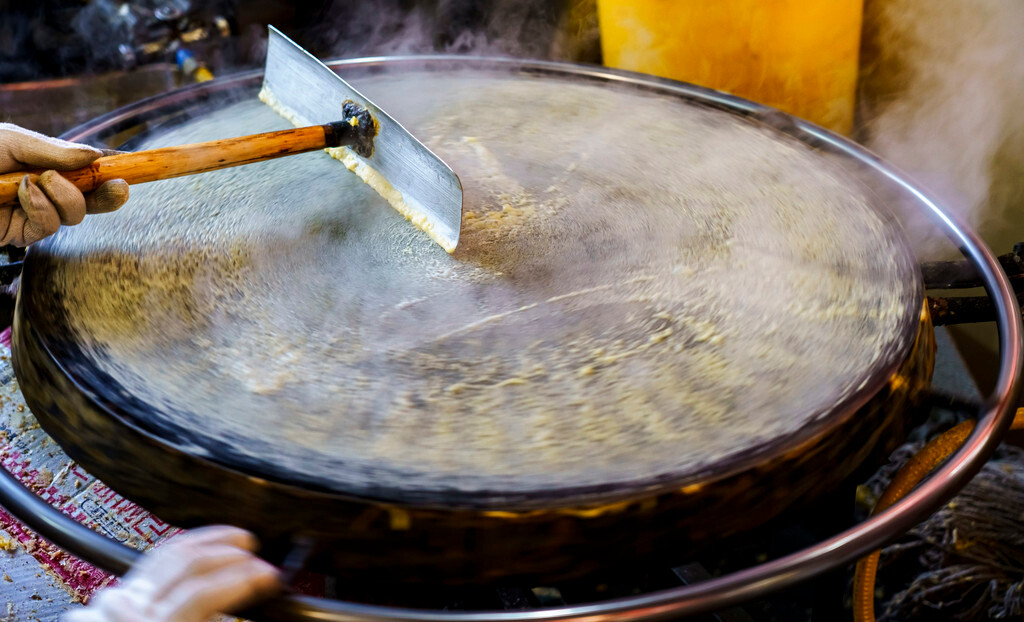“糁”其实是从外来的小吃之一,也是非物质文化遗产,但泰安本地人的早餐中也将糁作为了主流风味,并发展出与临沂黑糁不同的白糁。其实,这种像羹像粥又像汤的东西很难去界定它到底应该属于啥,反正好喝、有营养就够啦!