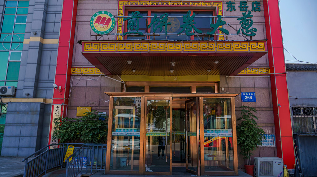 在进入泰安之时,打卡了这家当地人喜爱的地方老店,说起来名字真的是足够淳朴,作为连锁品牌就叫“煎饼卷大葱”;店内装修很不错,卫生也打扫得很干净,重点是煎饼全是现场制作,就在一楼的单独工作间,里面有工作人员现场制作煎饼,不仅香气扑鼻引人流口水,这种传统的煎饼制作过程也是一处值得观赏的手工艺。