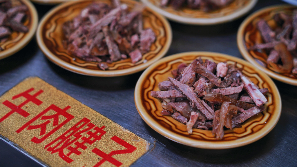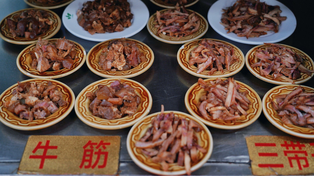 除此之外店里还有各种配菜,牛筋和三带子(牛的第三个胃)是我个人最喜欢的两样,而且糁汤吃完还能免费续,难怪大家都说“山东实在”,这消费用山东话说就稀好、不孬~