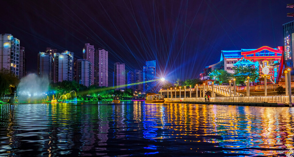 漂亮的临沂【新琅琊不夜街区】,则会带你穿越千年,回到古琅琊的魅力夜色,还可以乘船沿河游览,一路的灯光带与表演,更是精彩。