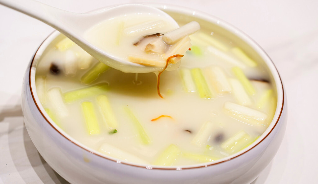 特别是这道【奶汤蒲菜】,早在舌尖上的中国第二季时就有专门拍过,该菜品用奶汤和蒲菜烹制,汤呈乳白色,蒲菜脆嫩鲜香倍增,入口的感觉清淡味美,非常的好吃,不愧是被誉为“济南第一汤菜”的佳肴。